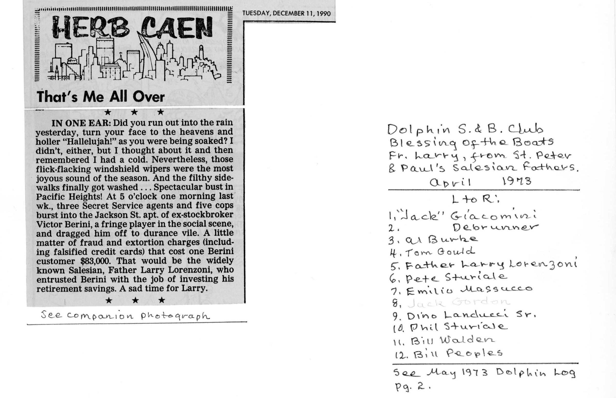 Blessing of the Dolphin Club boats by Father Larry LorenzoniSubject Person or Organization