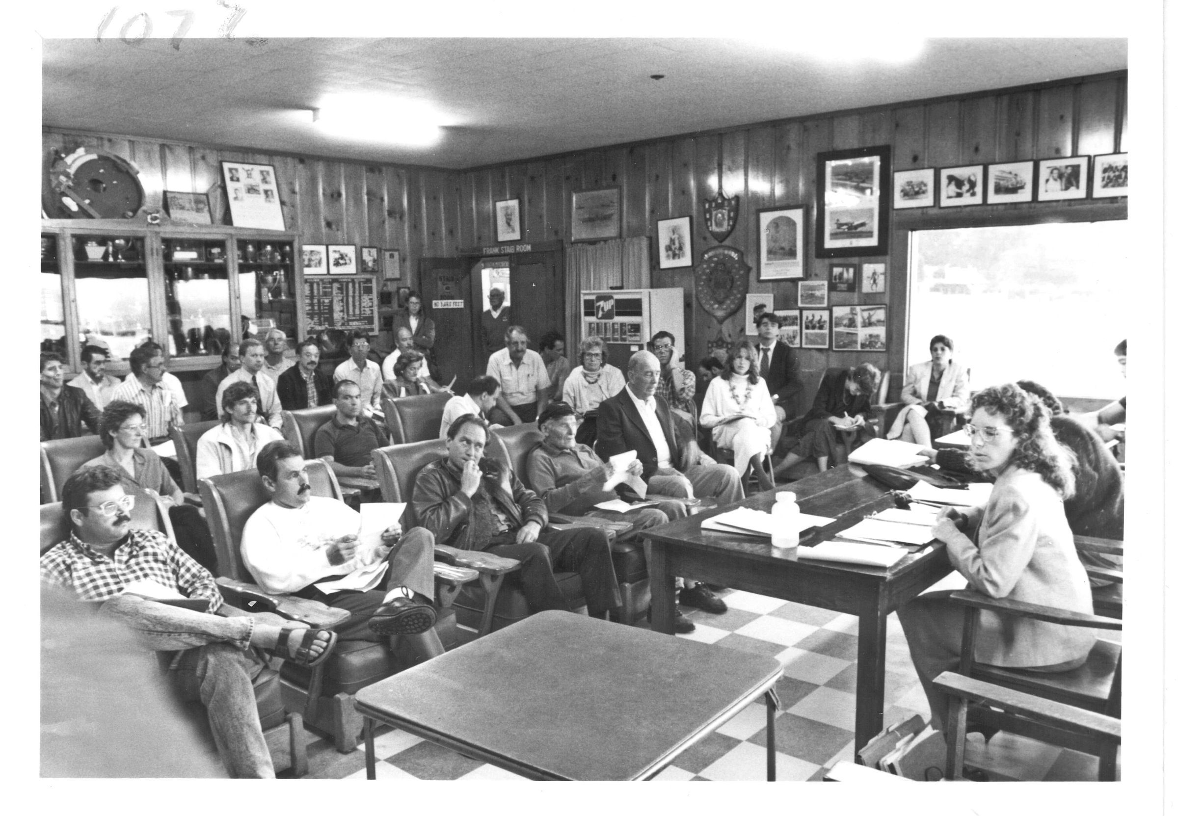 Board Meeting with Katie Maloney, first female club president; Same Board Meeting is also subject of photograph 198803.Subject Person or Organization