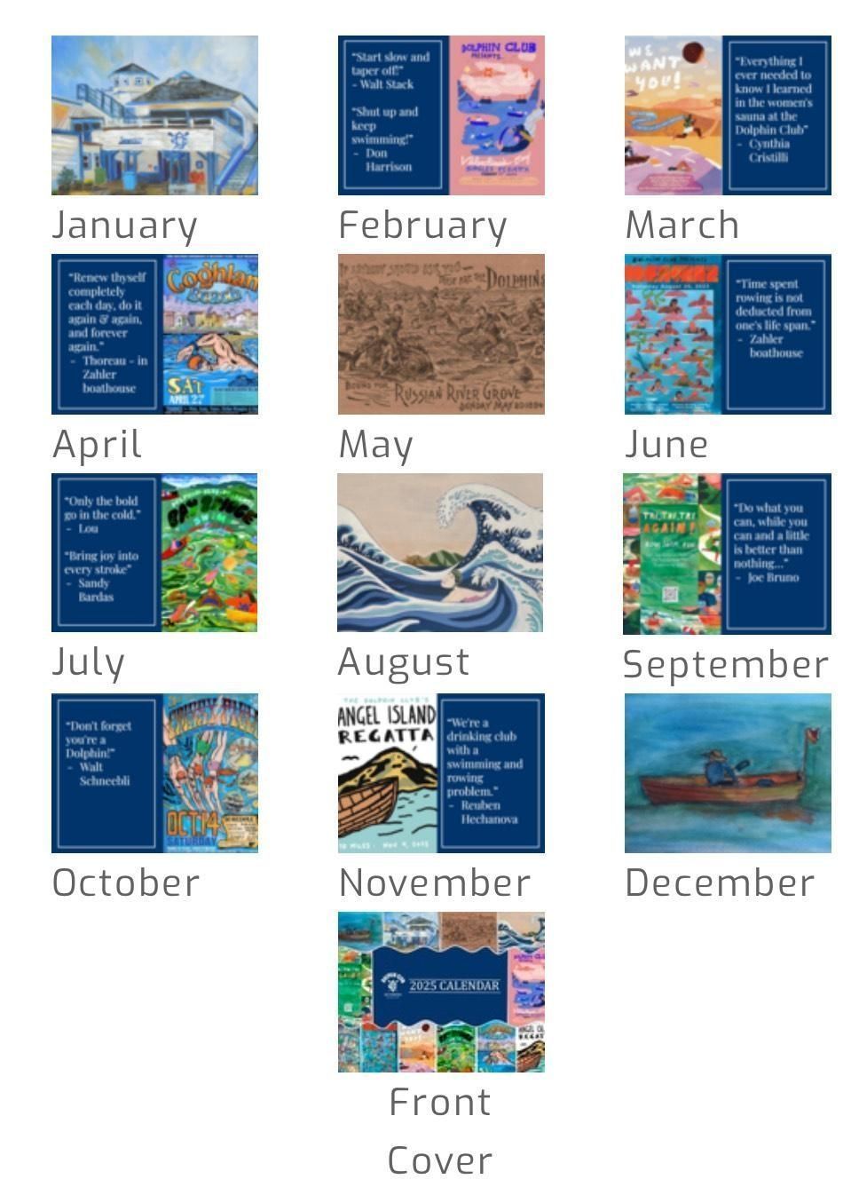 Some months feature a quote from a member.