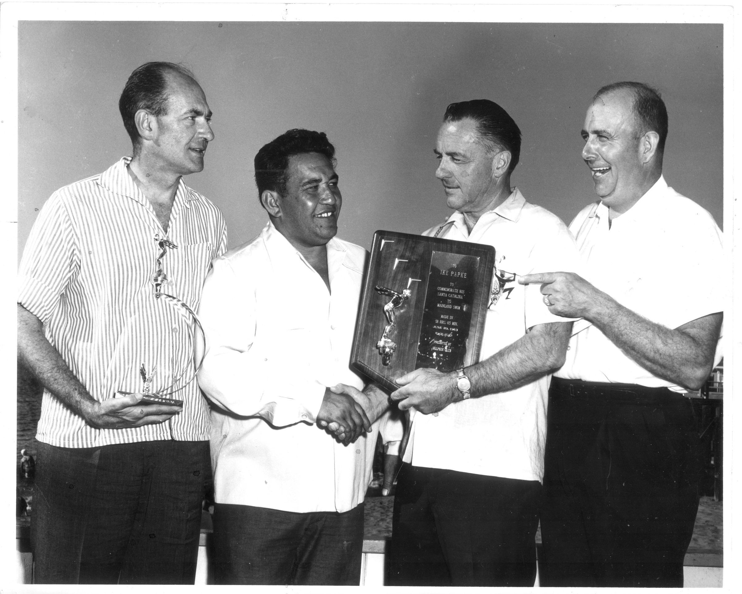 Ike Papke getting an award for his Catalina Swim 1963Subject Person or Organization