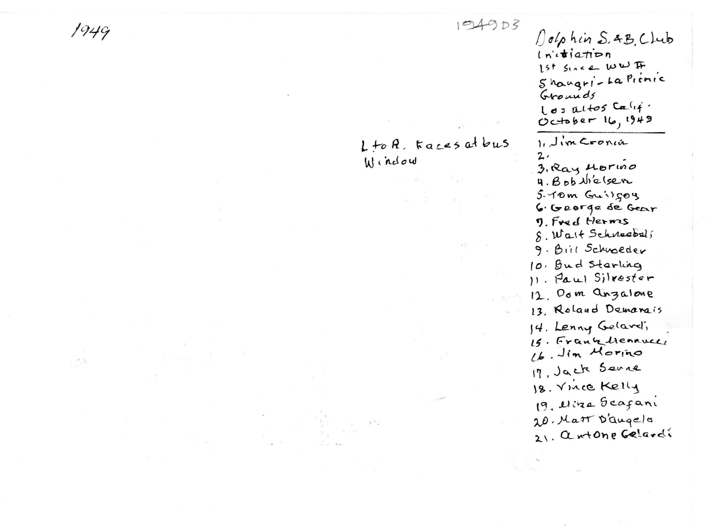 James J. Cronin, Raymond Morino, Bob Nielsen, Walt Schneebeli, Bud Sterling, Paul Silvester, Frank Mennucci, James Morino, Antone Gelardi