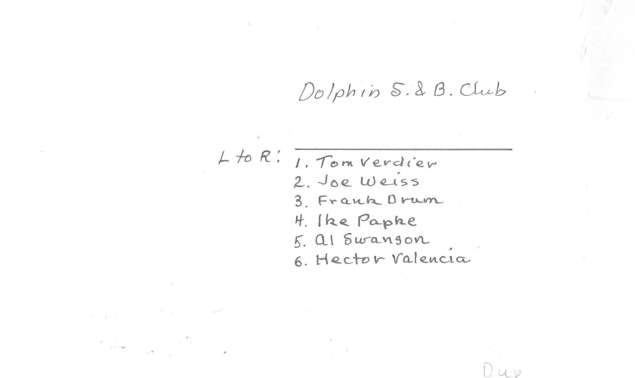 Club members Tom Verdier, Joe Weiss, Frank Drum, Ike Papke, Al Swanson, and Hector ValenciaSubject Person or Organization