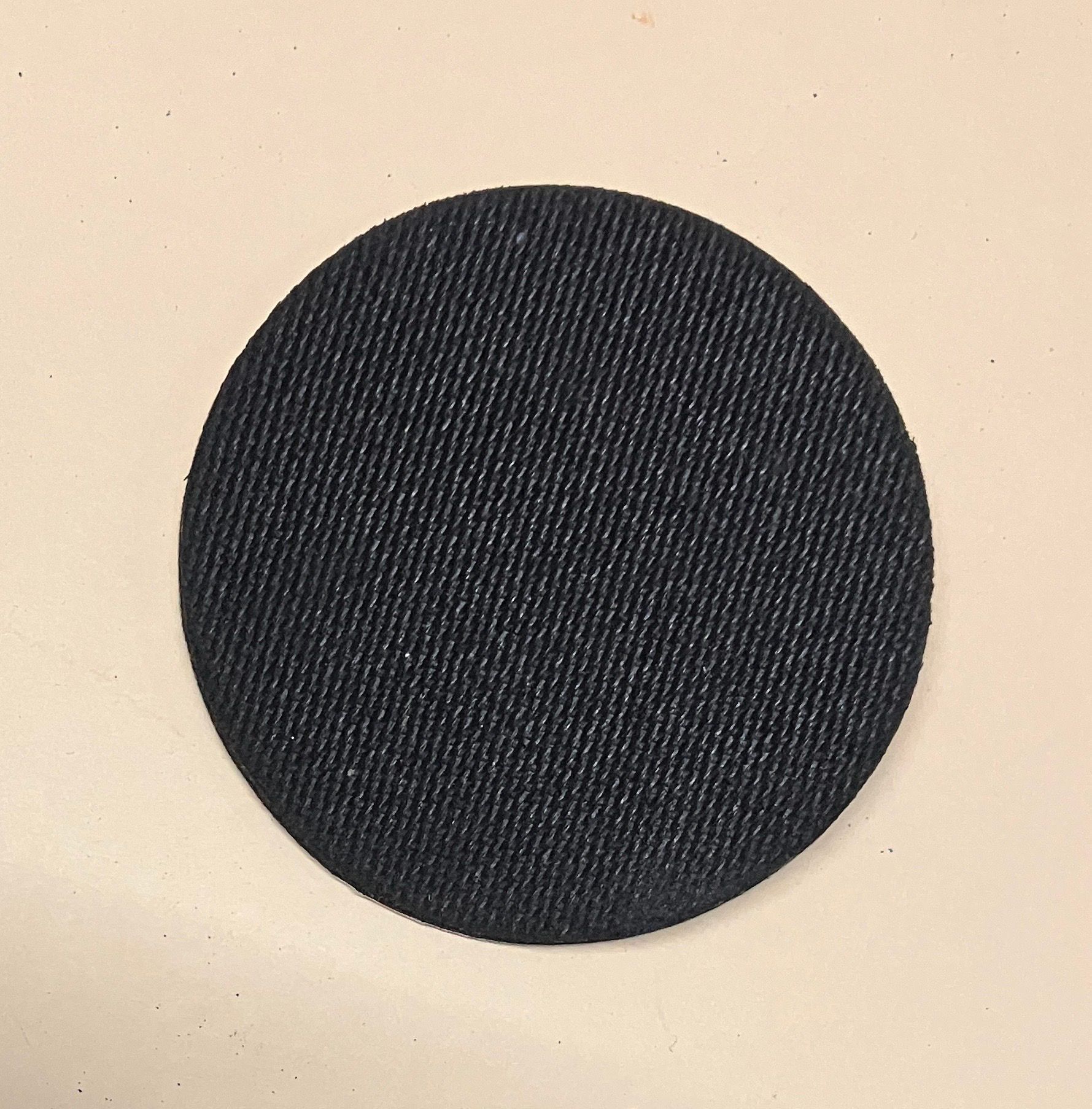 Coaster with vinyl top attached to black foam back. Image on the vinyl is the barrel inside a breaking wave. Image is white and blue.