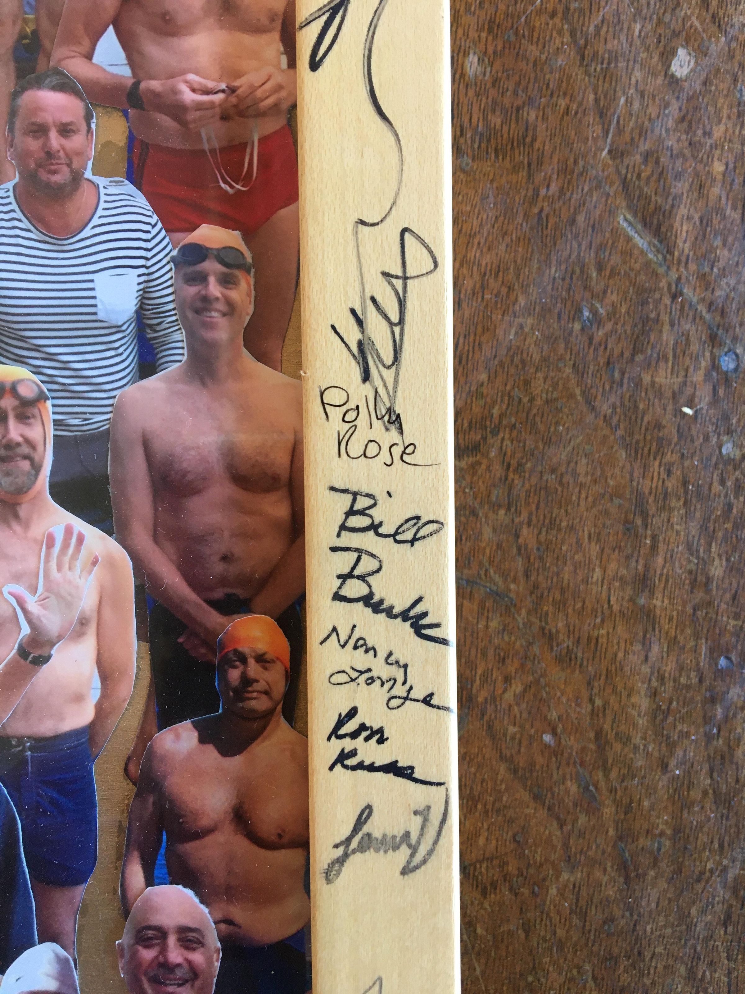 Signatures of a number of individuals are around the edge of the wooden frame.