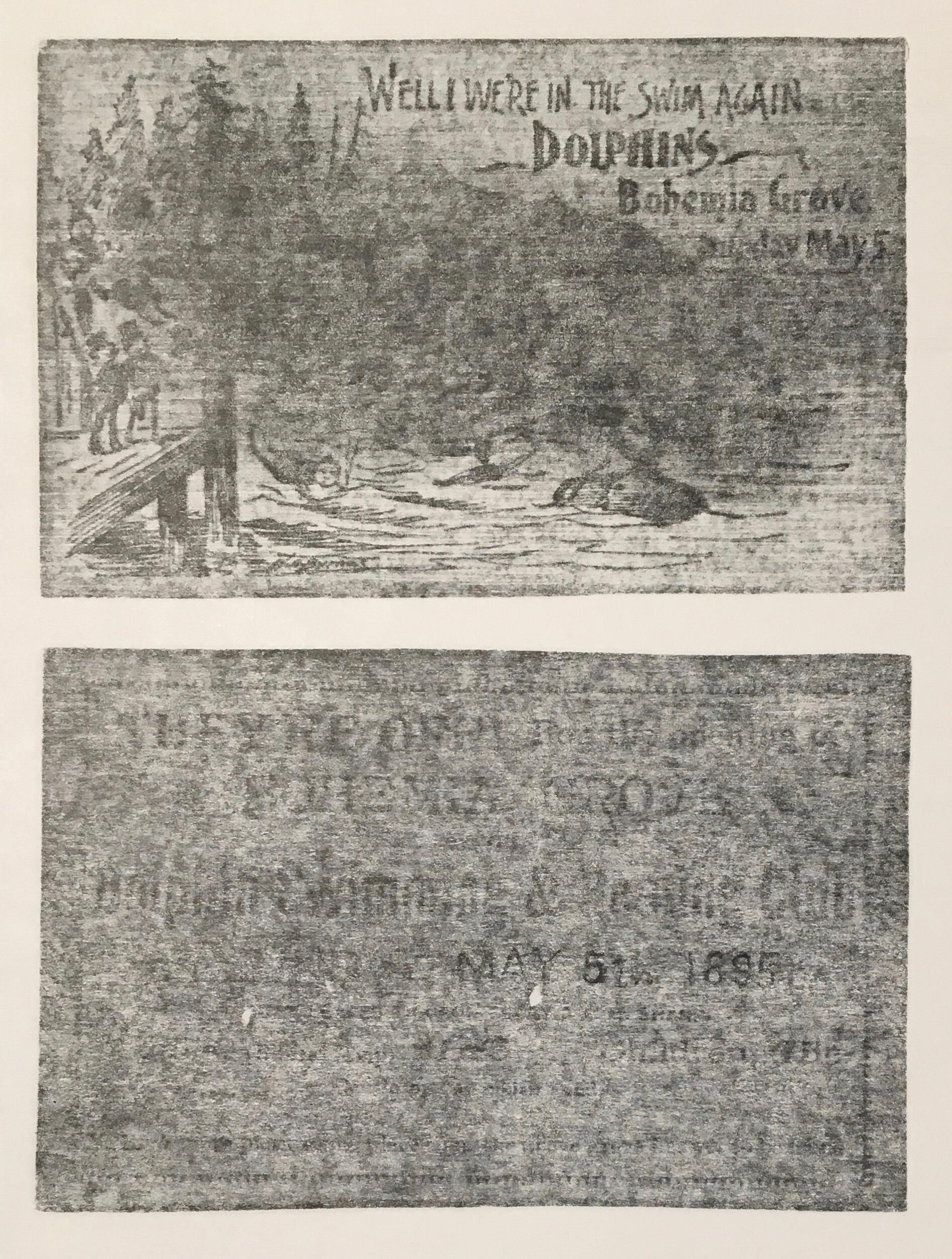 Copy of train ticket and very poor copy of invitation card to annual excursion on May 5, 1895 at Bohemia Grove.