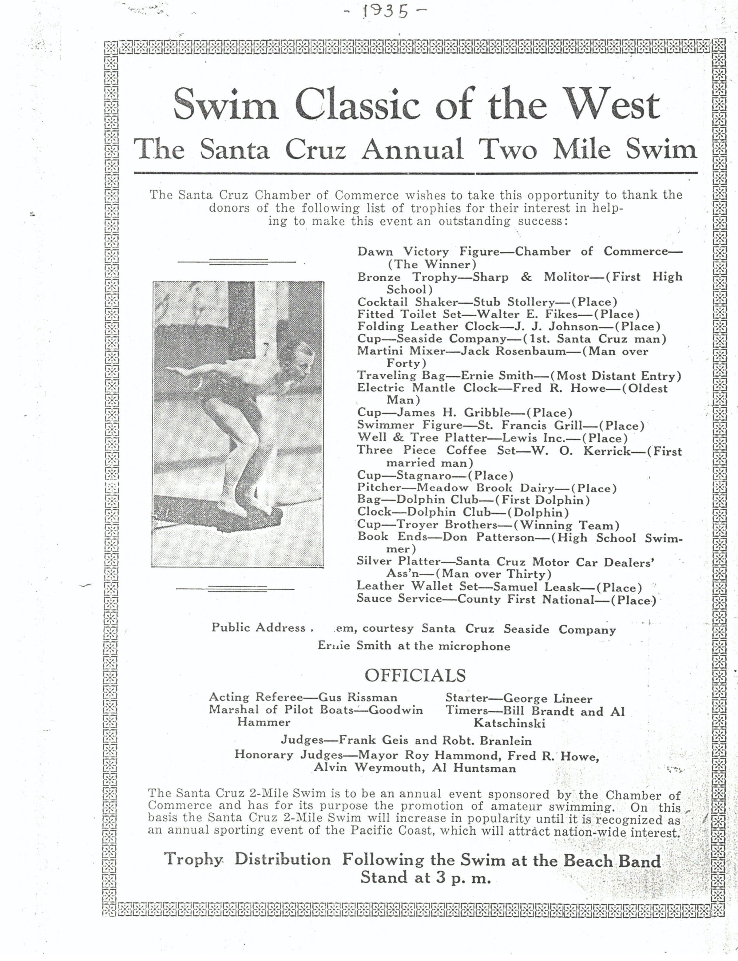 Copy of flyer for the Santa Cruz Annual Two Mile Swim.