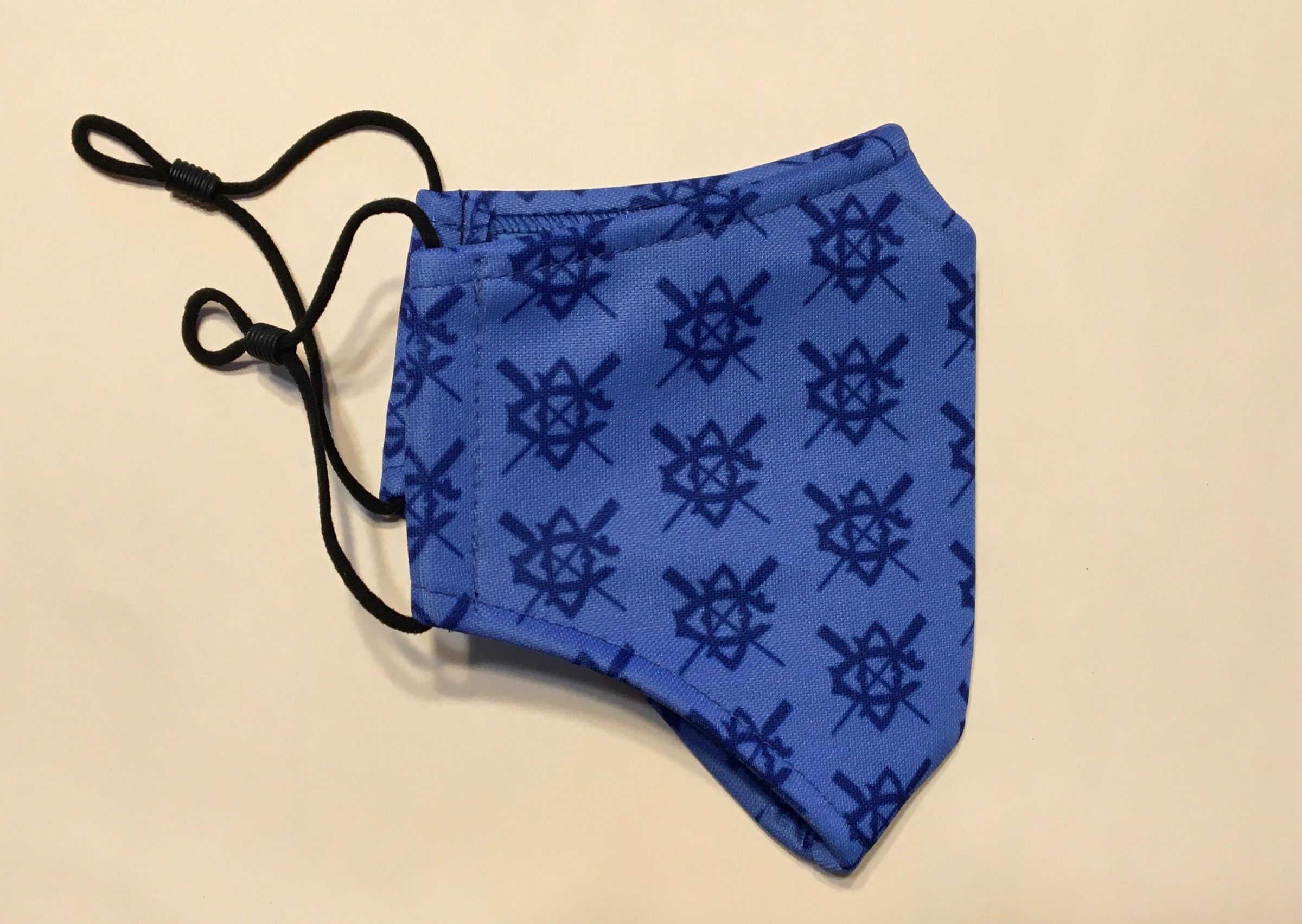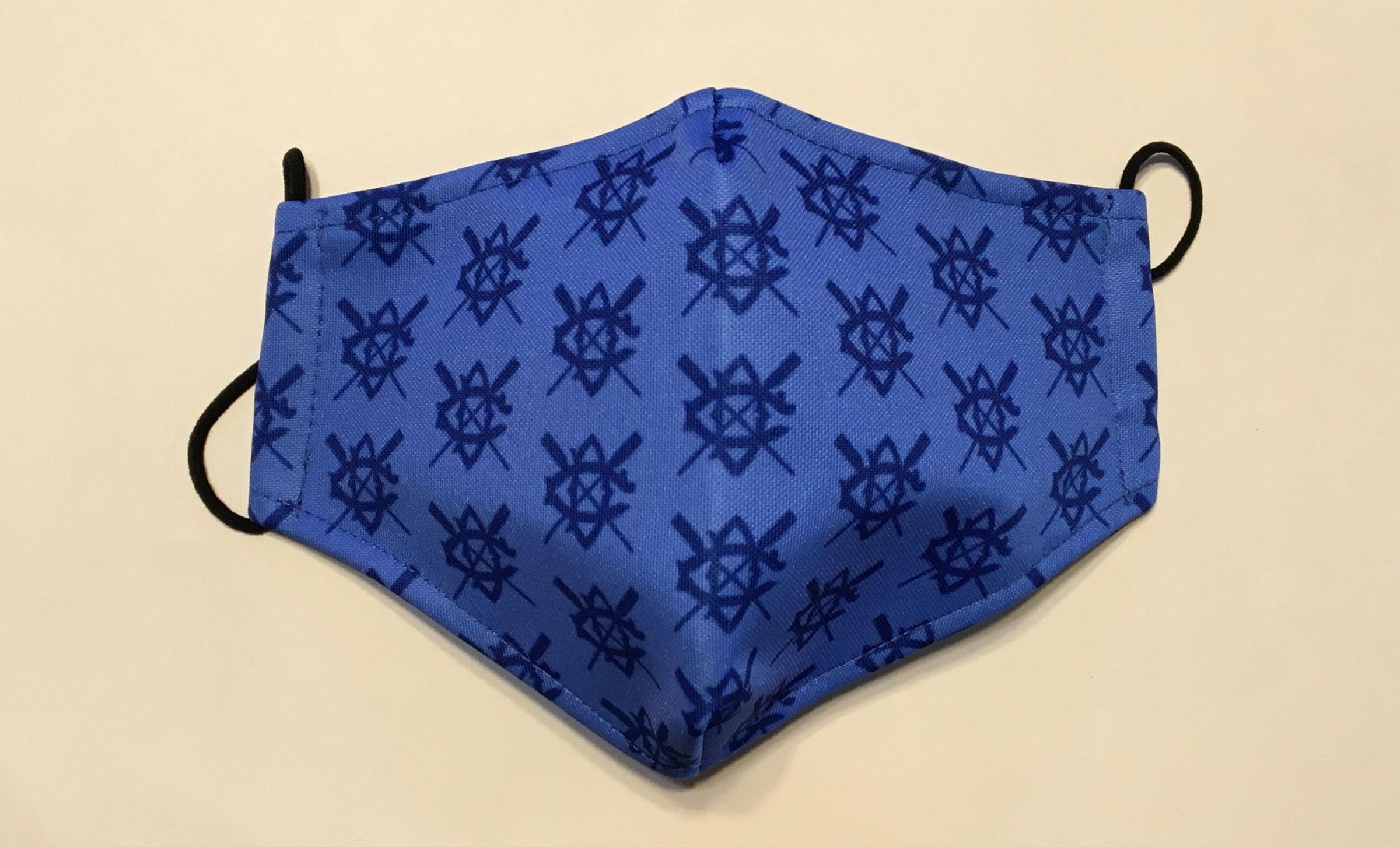 One of six Covid-19 masks made 2020-2021. Designed by member Jim Frew with help from Diane Walton (President) and Andrea Morgan (Swag).