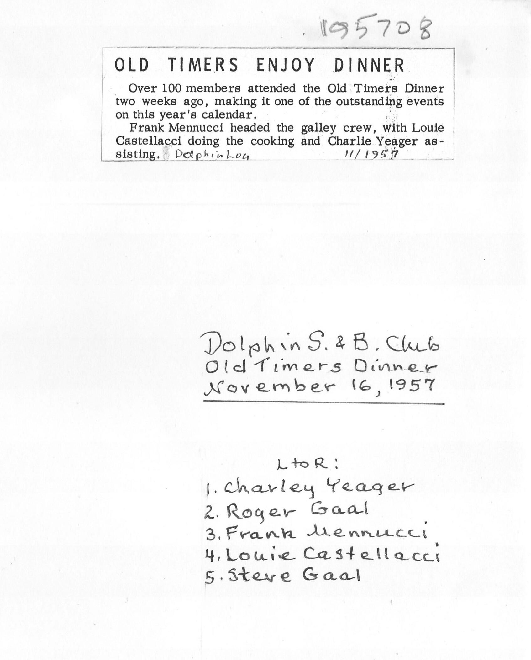 Galley Crew for Old Timers Dinner 1957Subject Person or Organization