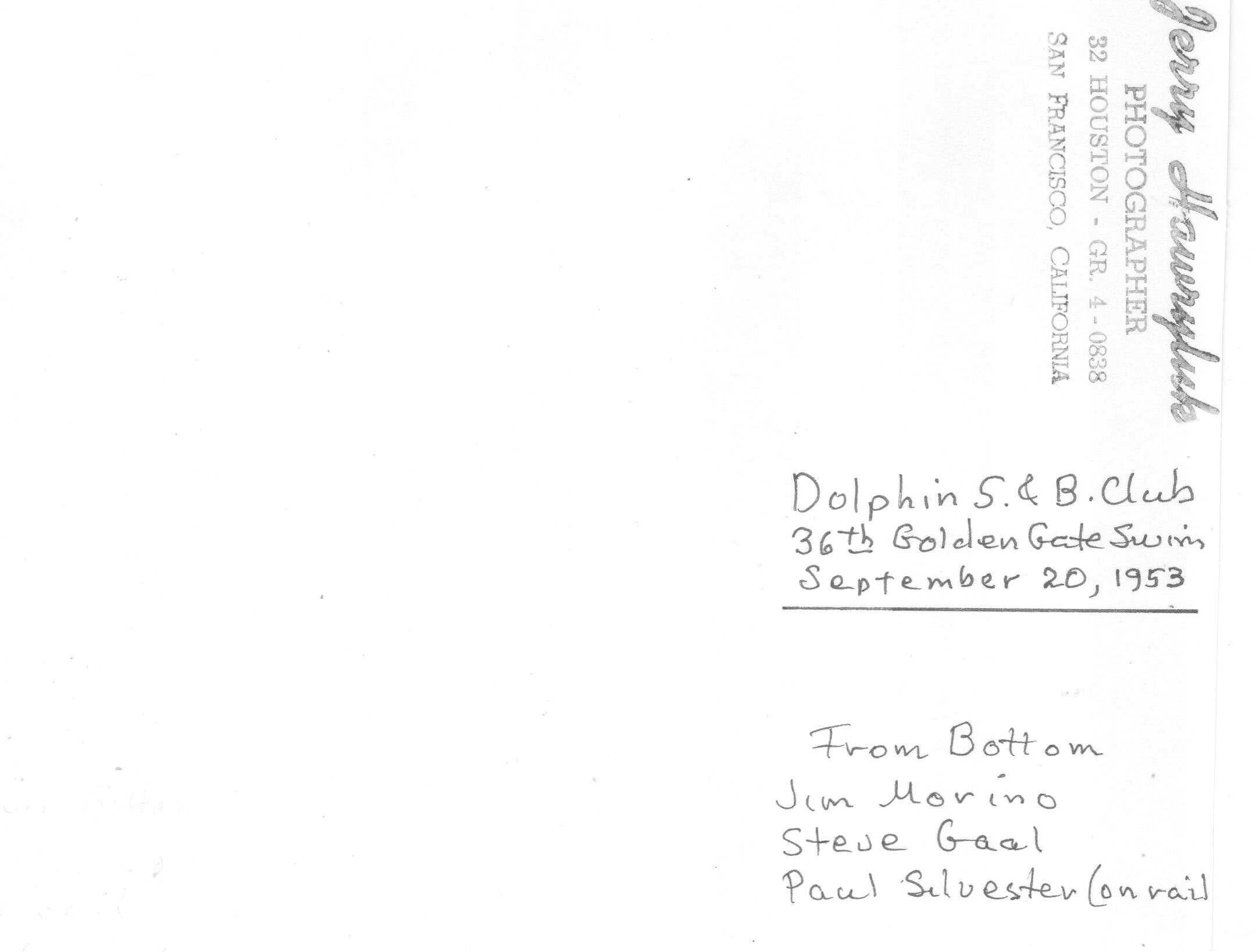 Climbing aboard after the Gate Swim: Jim Morino and Steve Gaal, Sr