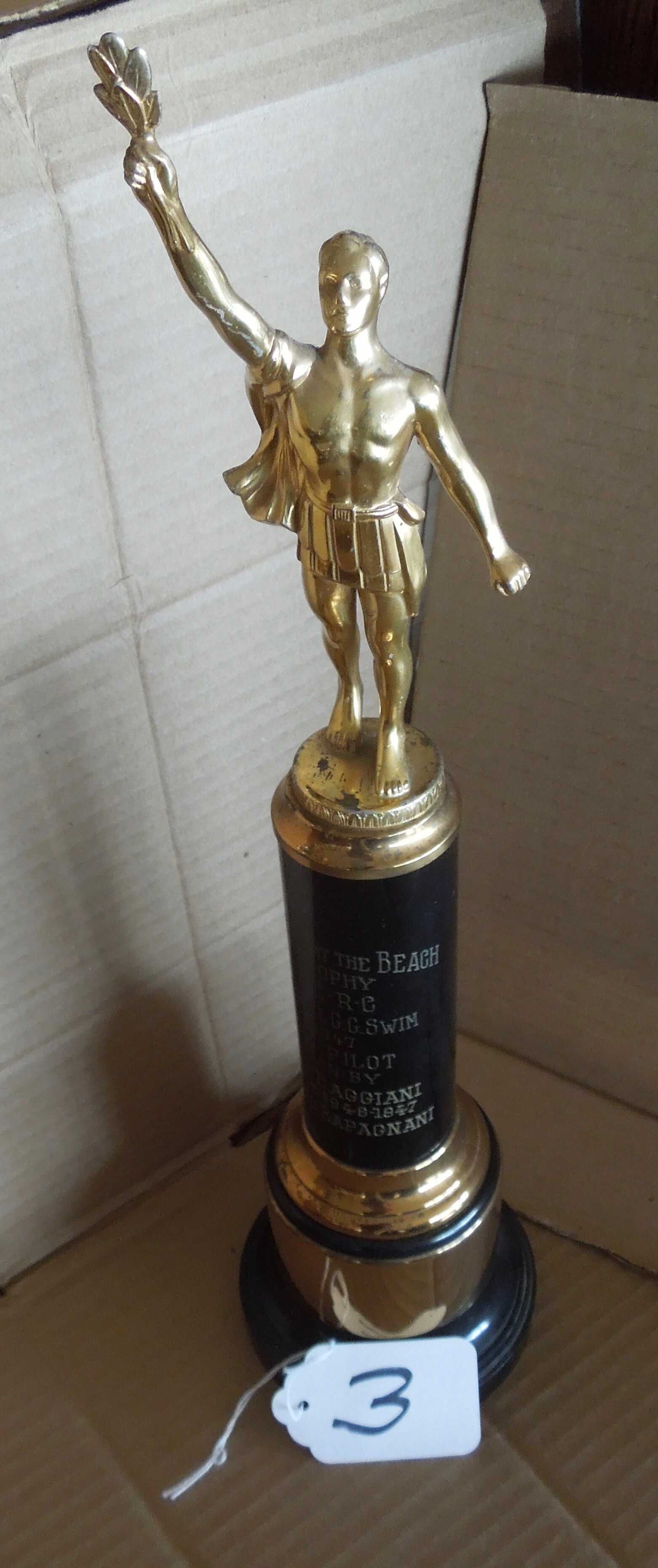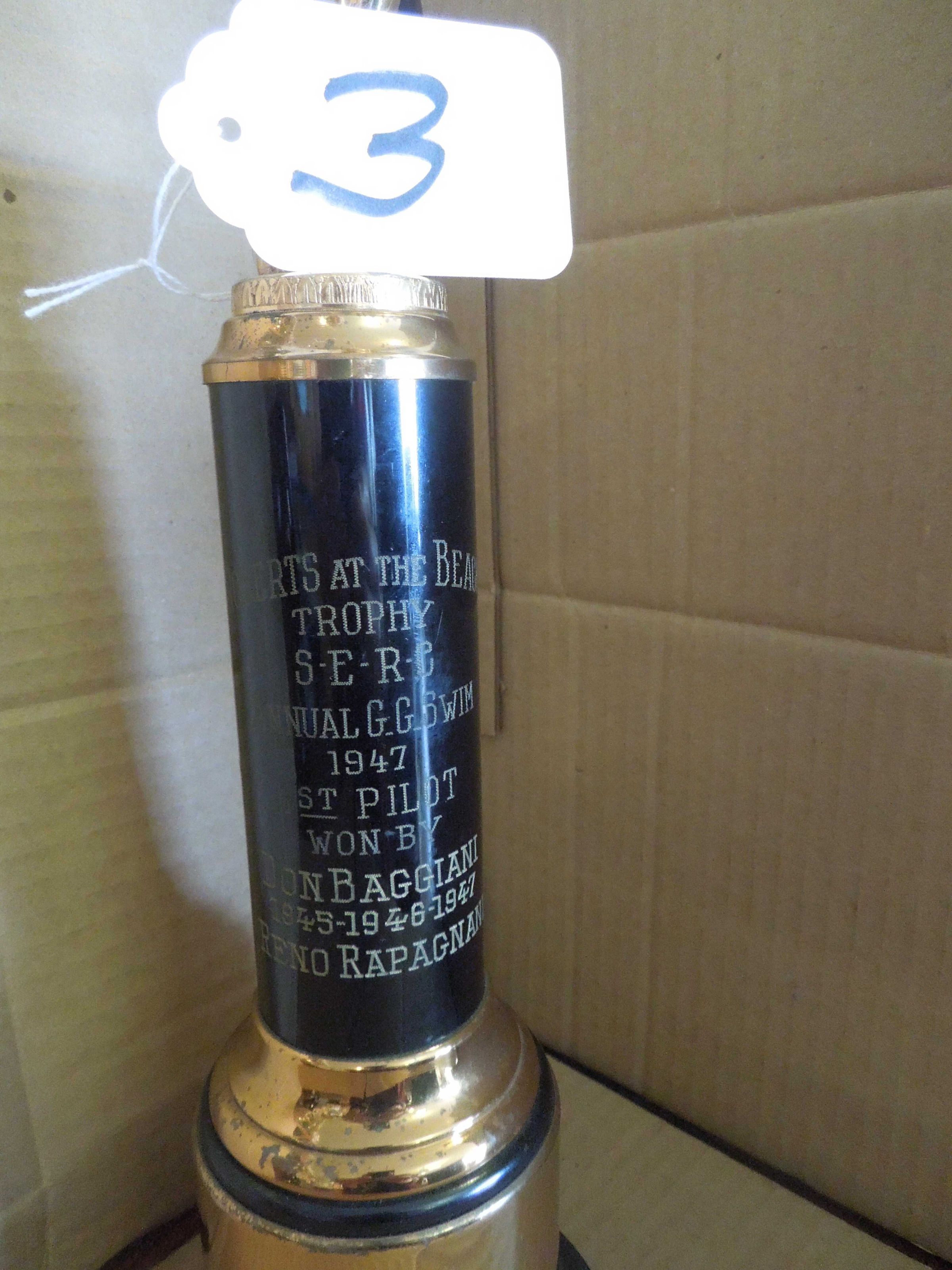 Engraved on base: "Roberts at the Beach -Trophy SERC Annual GG Swim 1947 - 1st Pilot won by Don Baggiani - 1945-1946-1947 Reno Rapagnani"Made/Created
