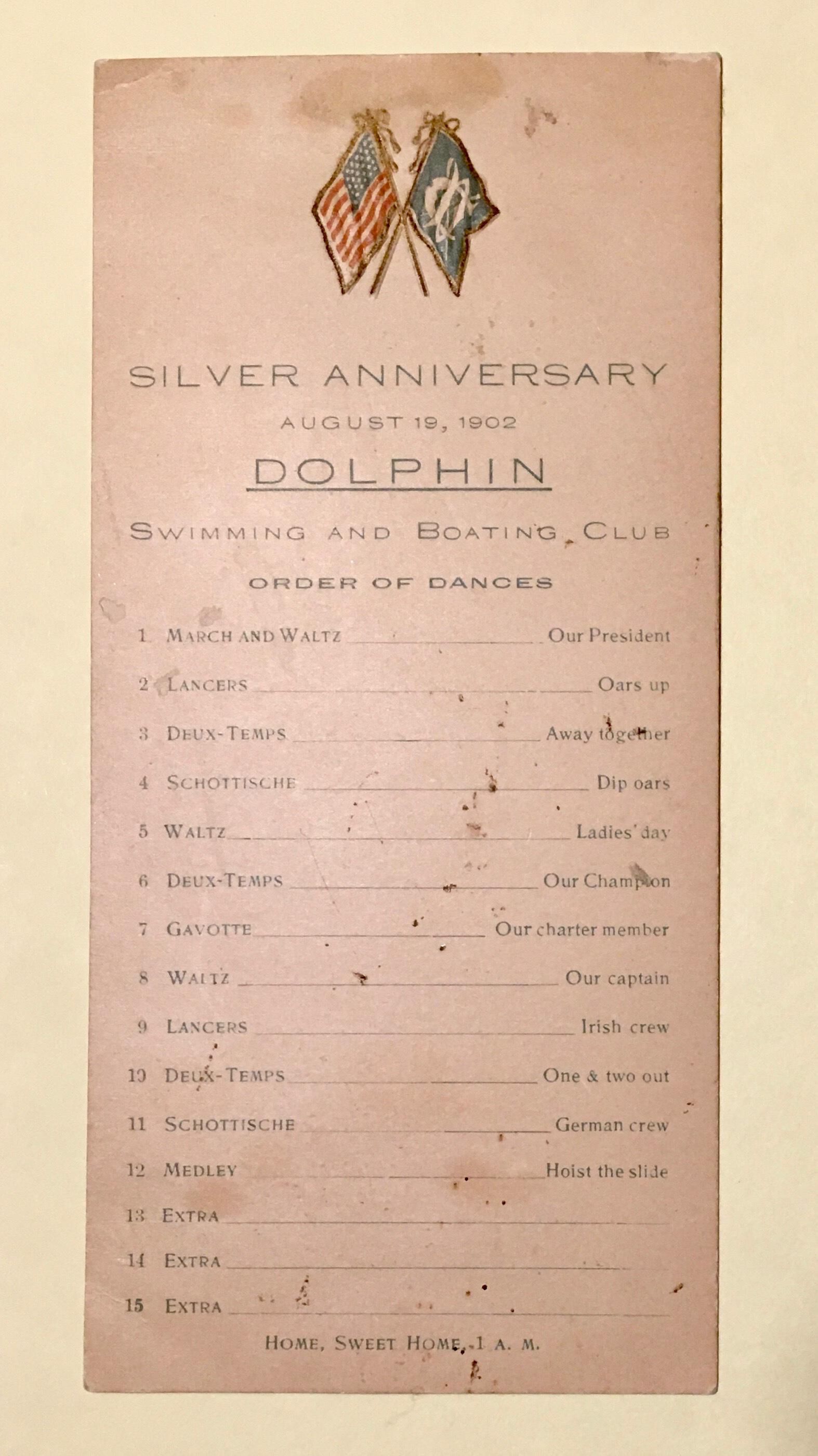 List of dances at Dolphin Club Silver Anniversary event August 18, 1902.
