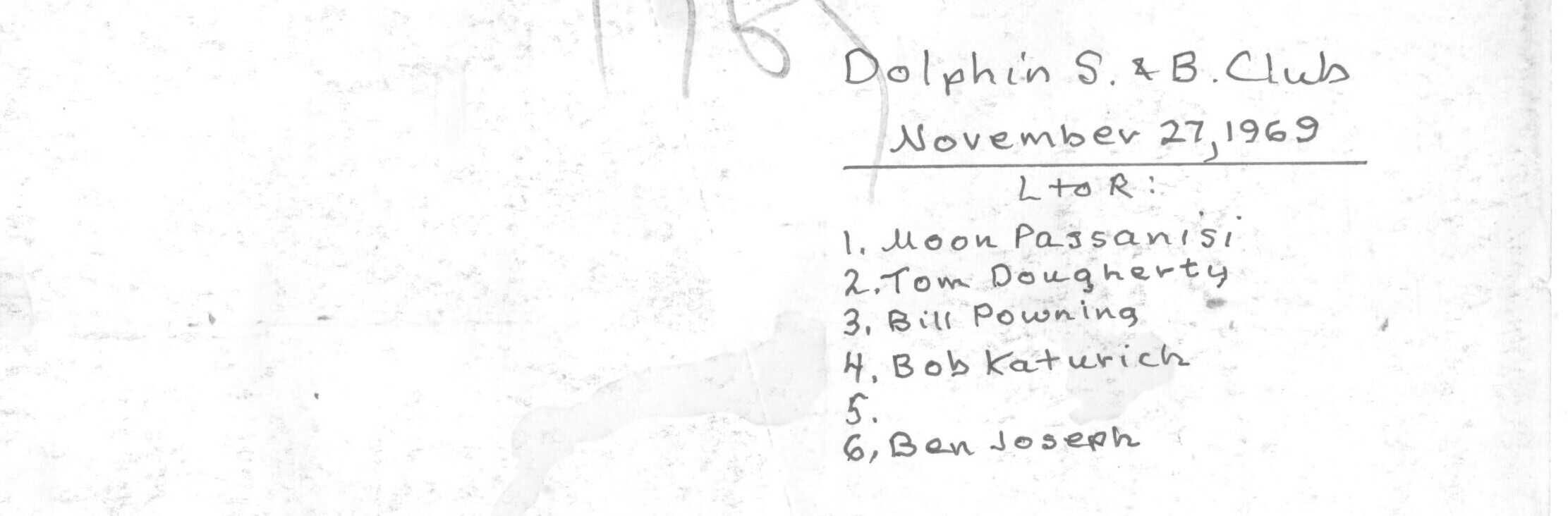 Dolphin men Passanisi, Dougherty, Powning, Katurich, unknown, and Joseph