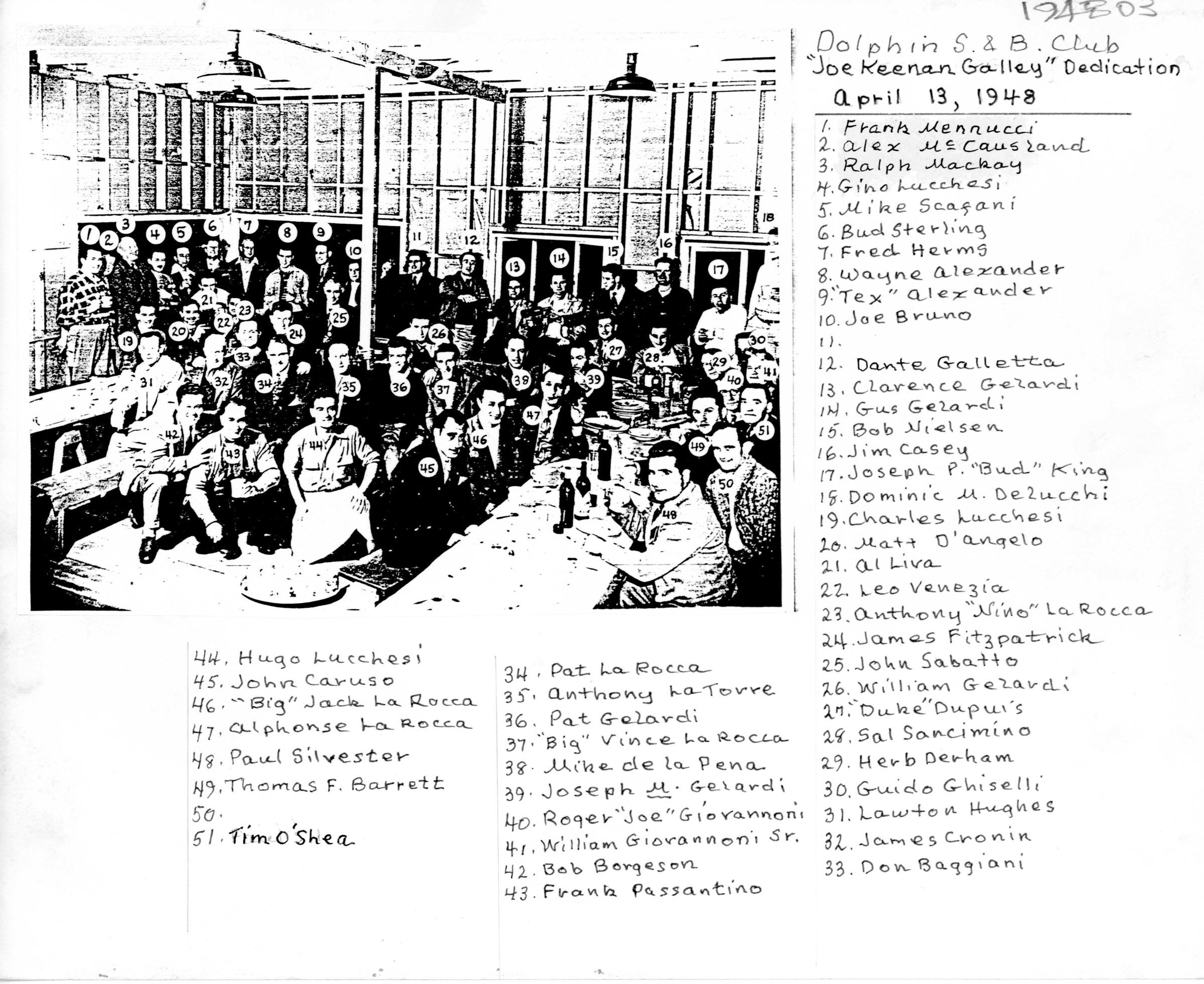 Joseph B. Keenan, Frank Mennucci, Joe Bruno, Lawton Hughes, James J. Cronin, Don Baggiani, Paul Silvester, Wayne Alexander, Albert "Al" LivaSubject Place