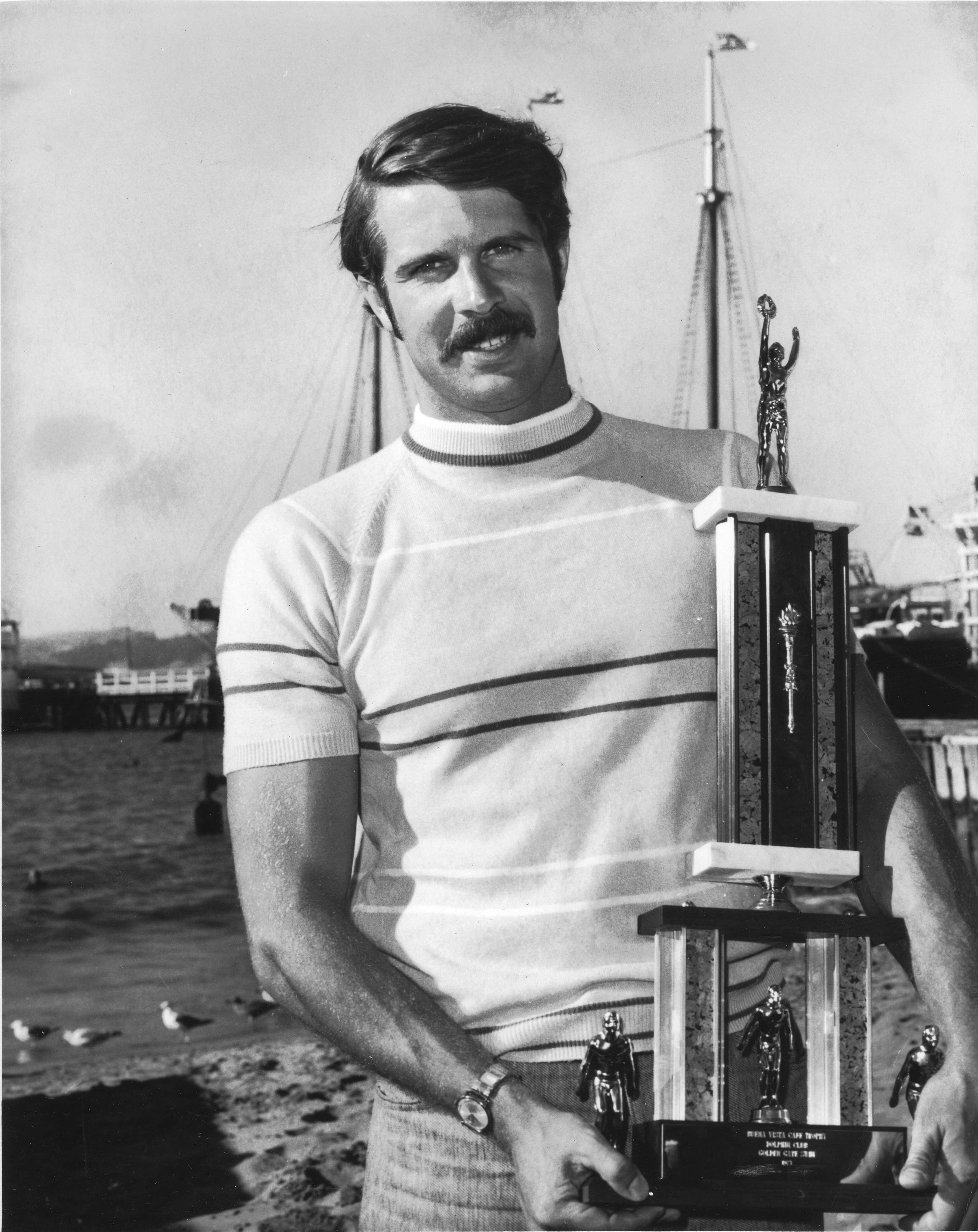 Mike Garibaldi holding a swim trophySubject Person or Organization