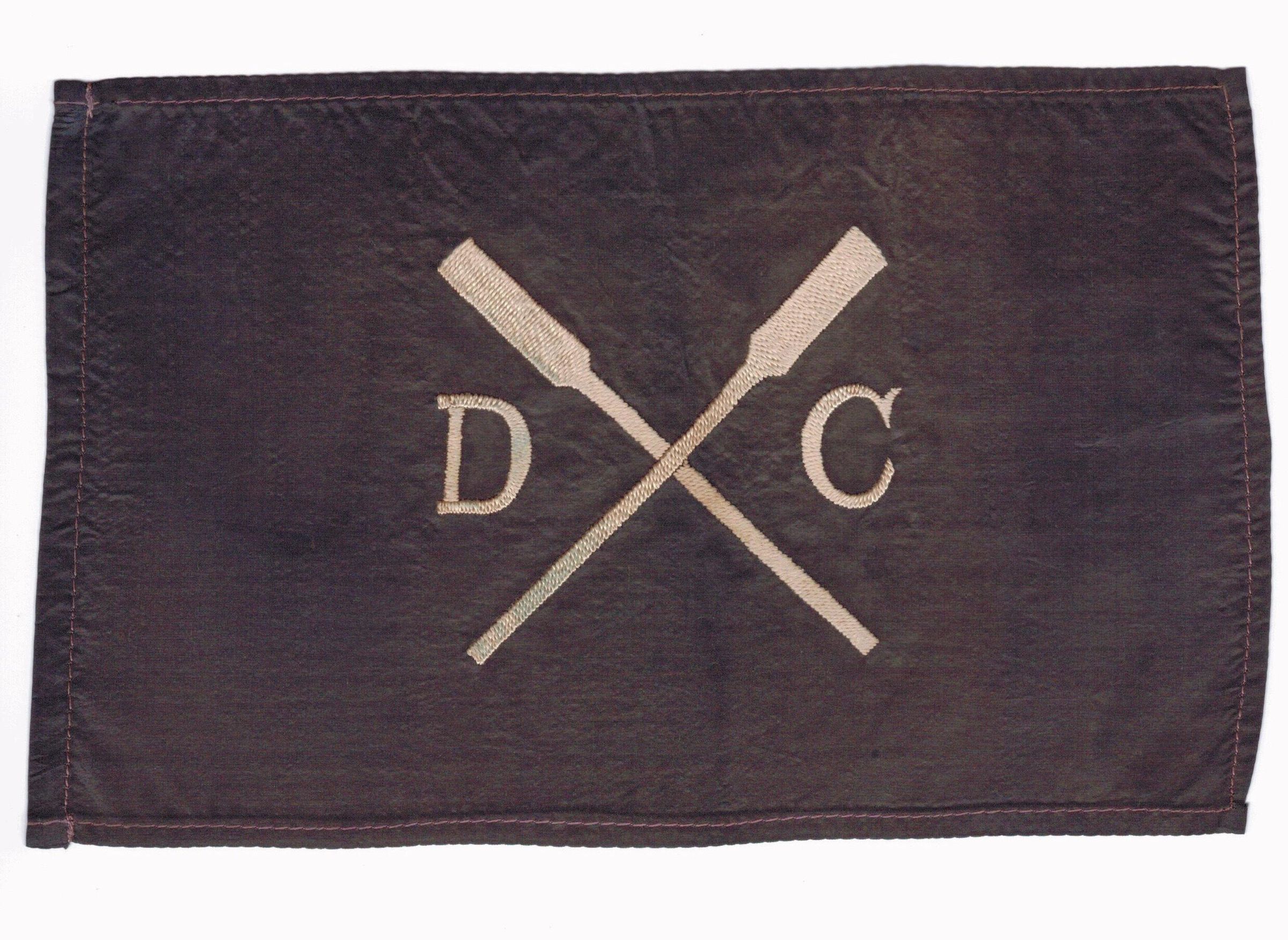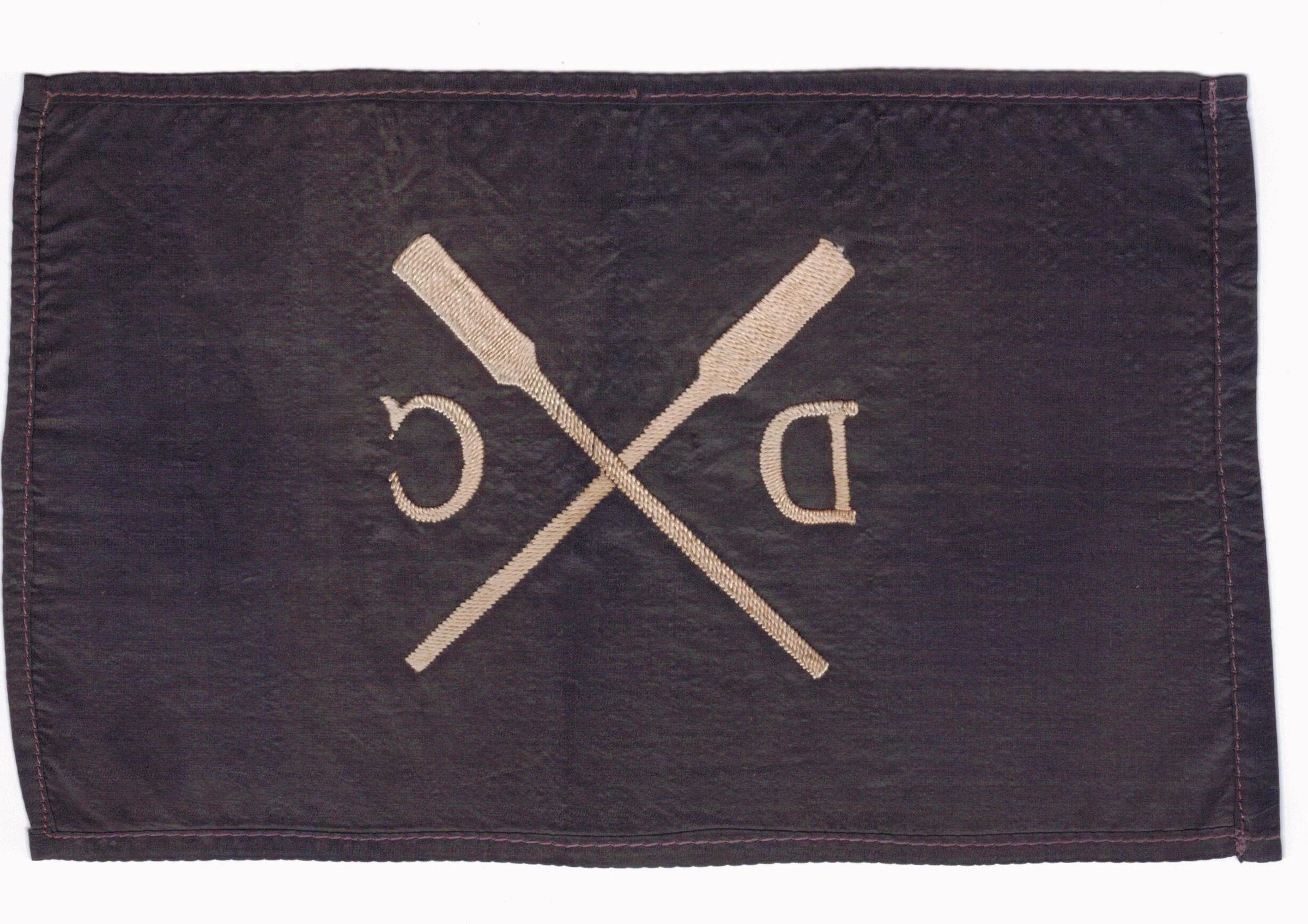 In center are letters D and C embroidered in white/silver color thread and two crossed oars in-between.