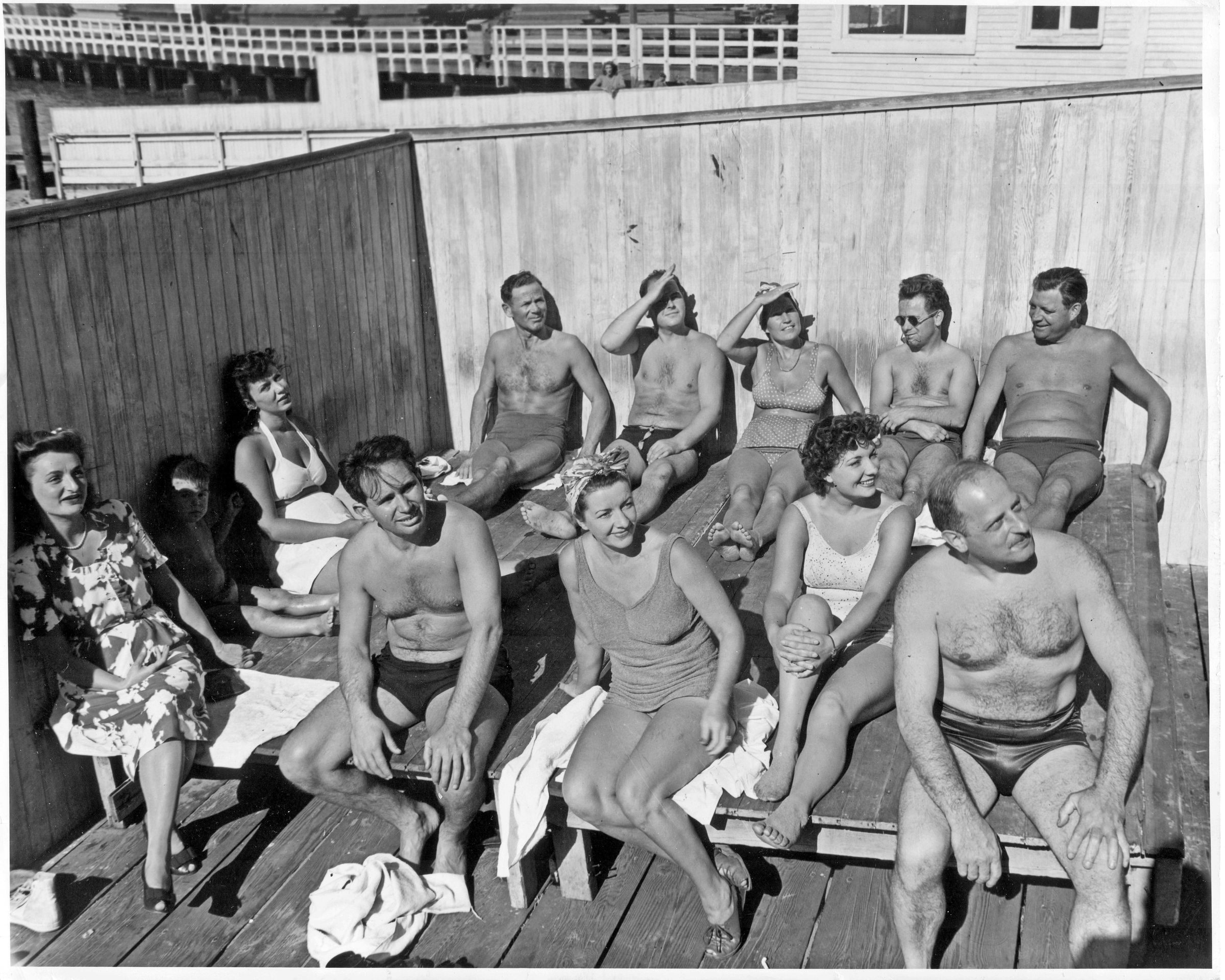 Dolphins, family and friends on the deck enjoying the sun