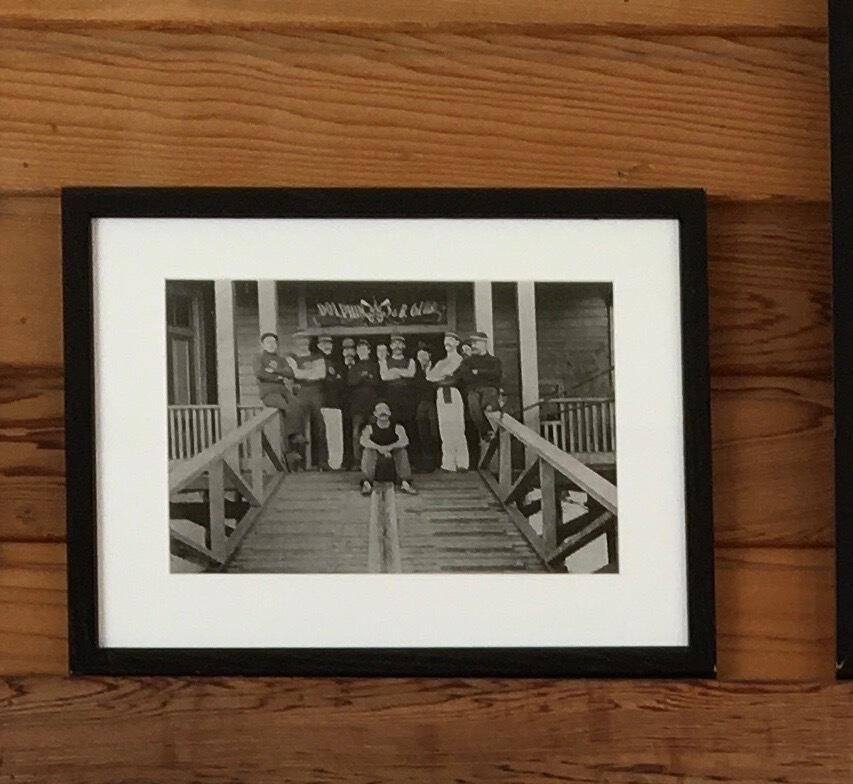 Dolphins at Boathouse door when located west end of Aquatic Park at toot of Van Ness