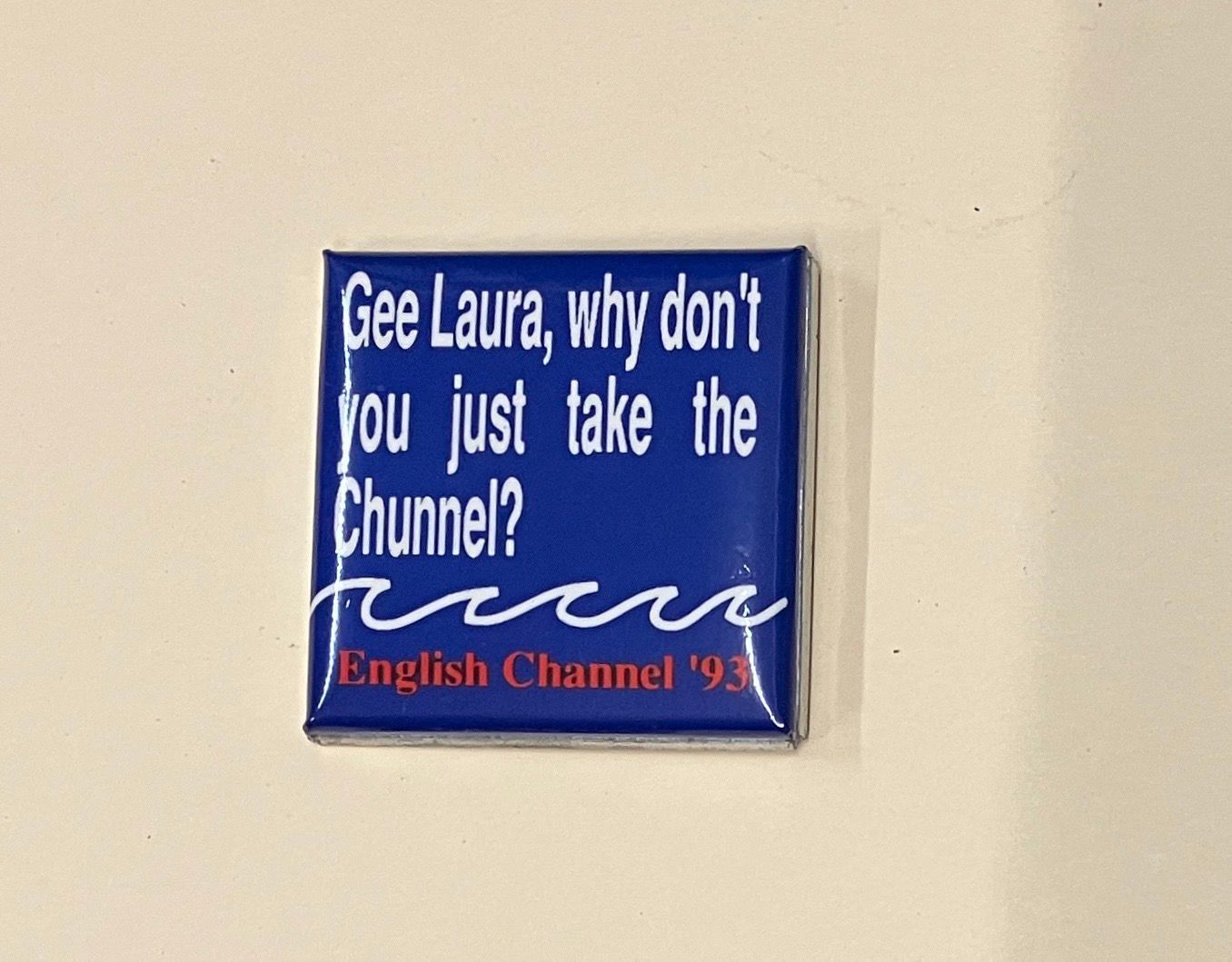 Text in white: Gee Laura, why don't you just take the Chunnel