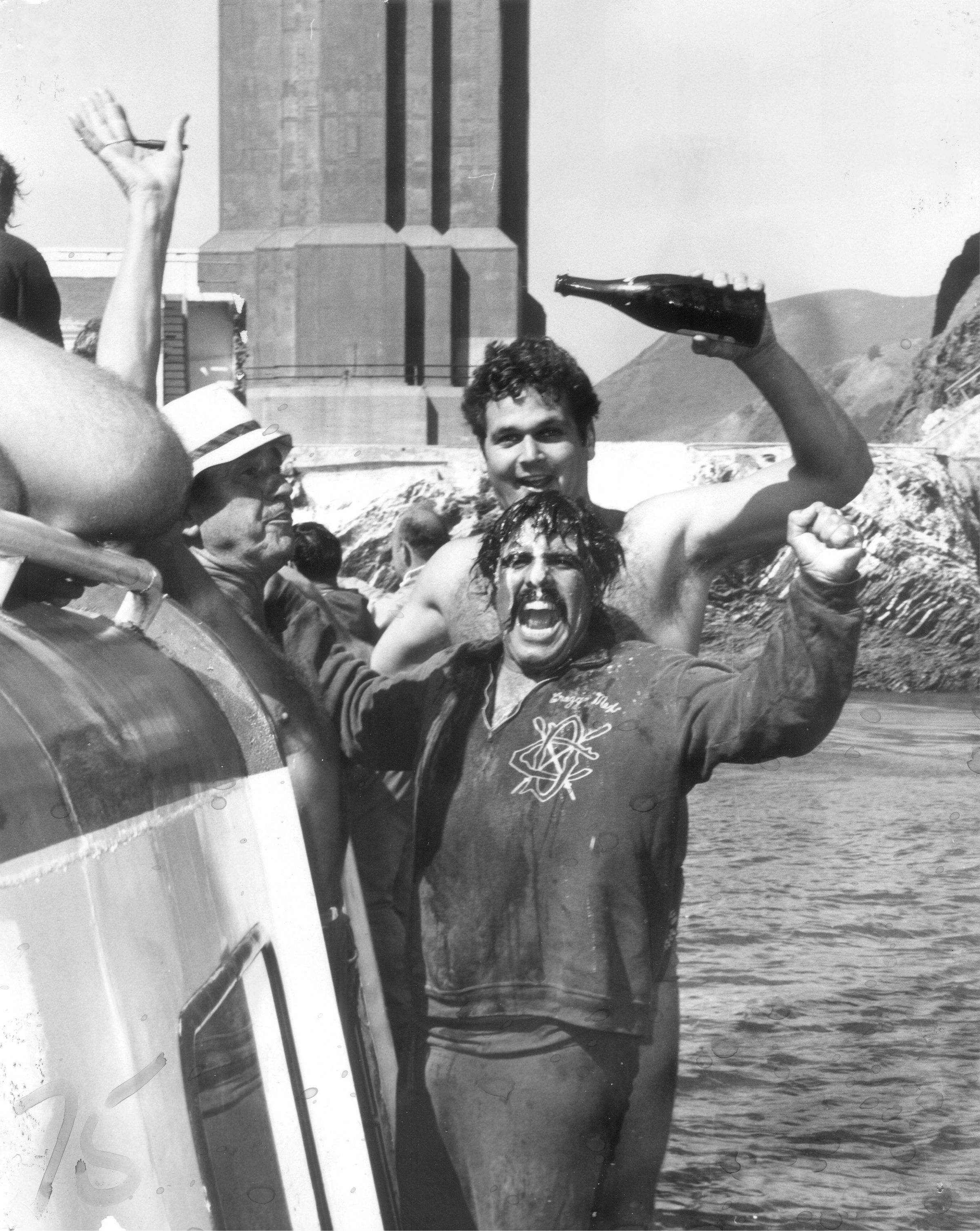 Mike McElligott (rear) and Dan Padilla ("Crazy Mex") after the Golden Gate Swim