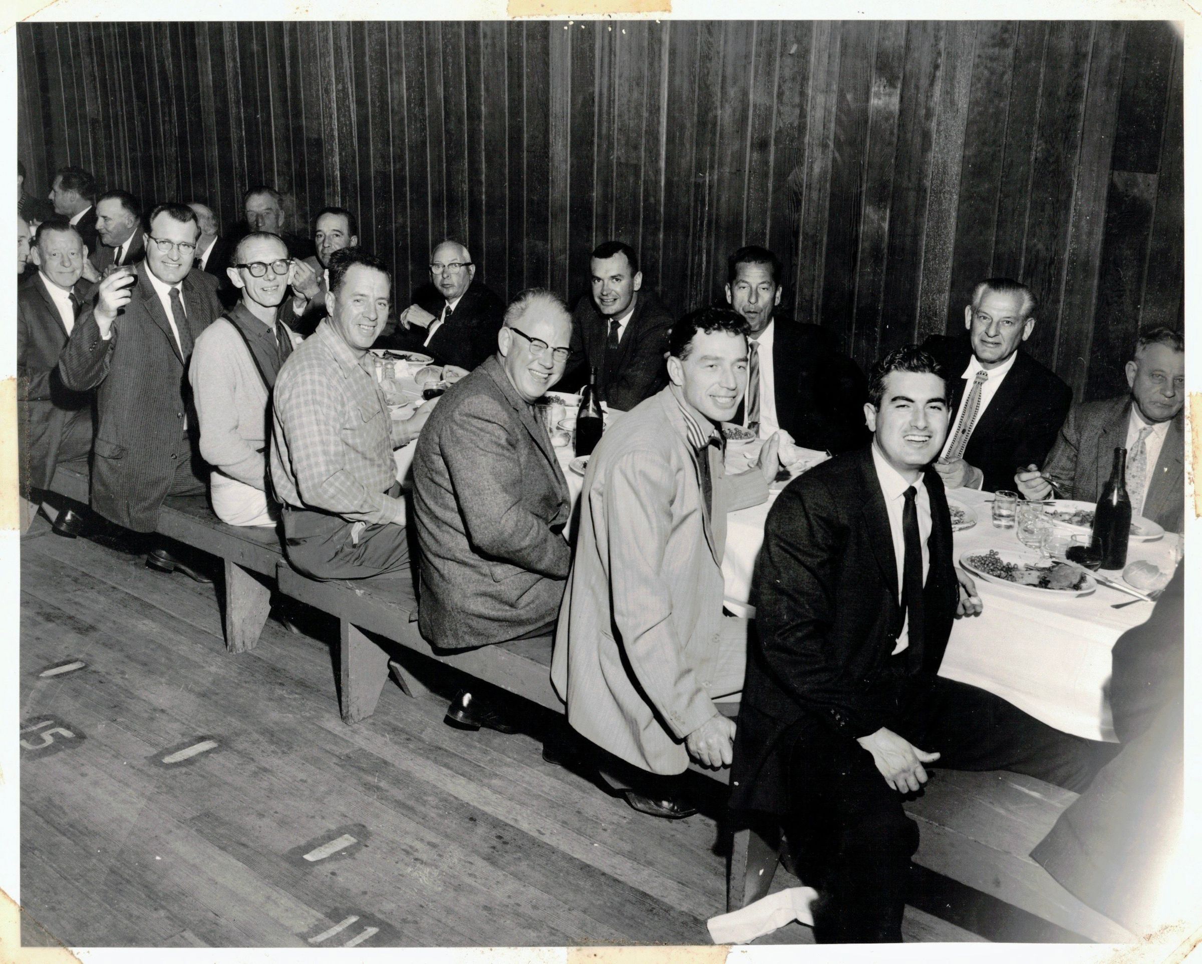 Five candid photos of members attending and serving at 1960 Old Timers Dinner.Made/Created