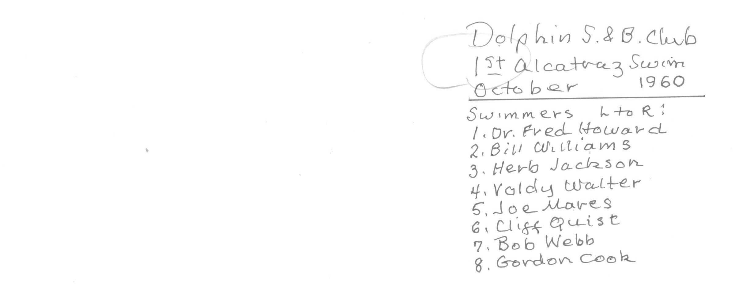 First Alcatraz Swim 1960 won by Bill WilliamsSubject Person or Organization