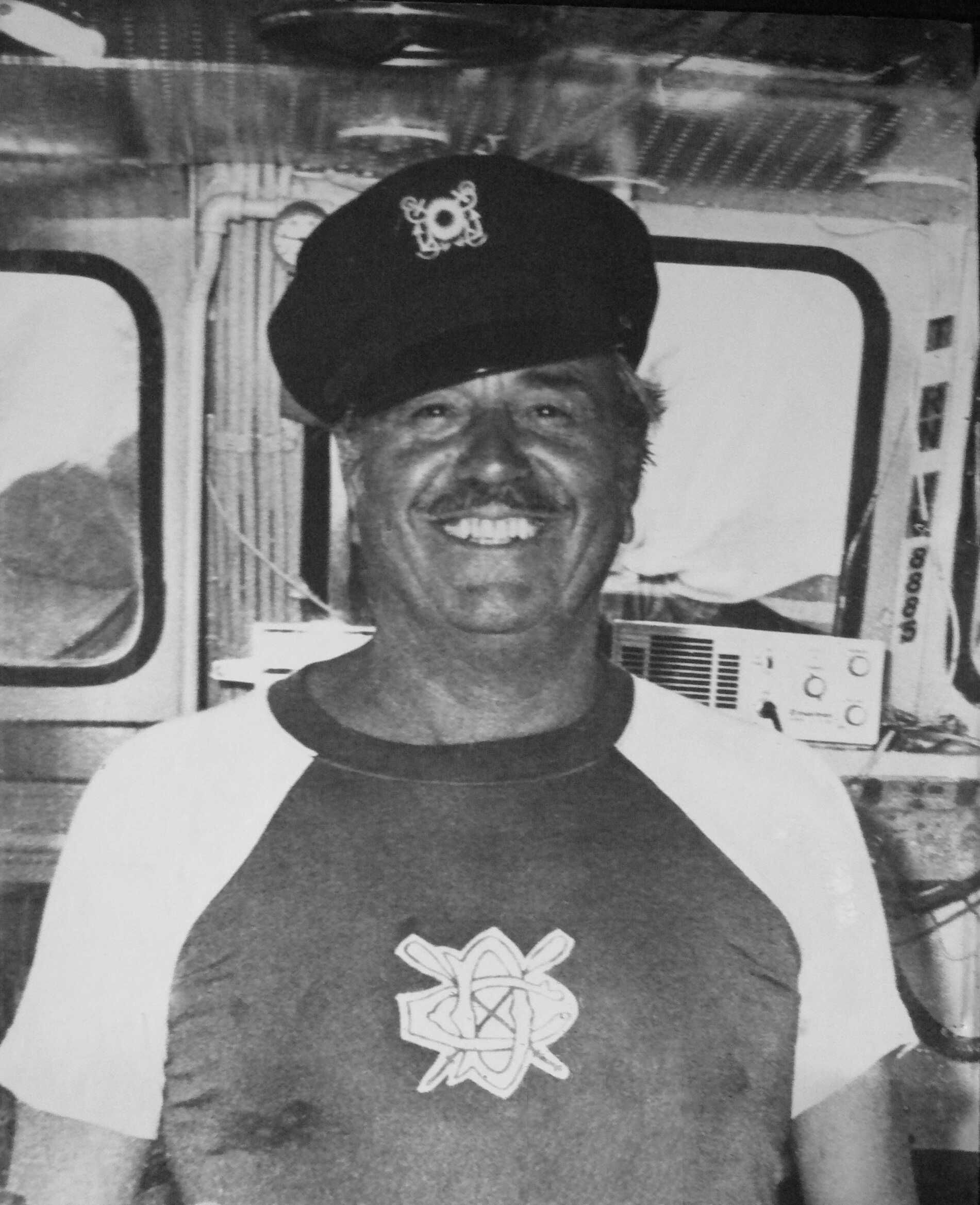 A smiling man with a nautical cap. Framed photograph with glass.Photograph Details