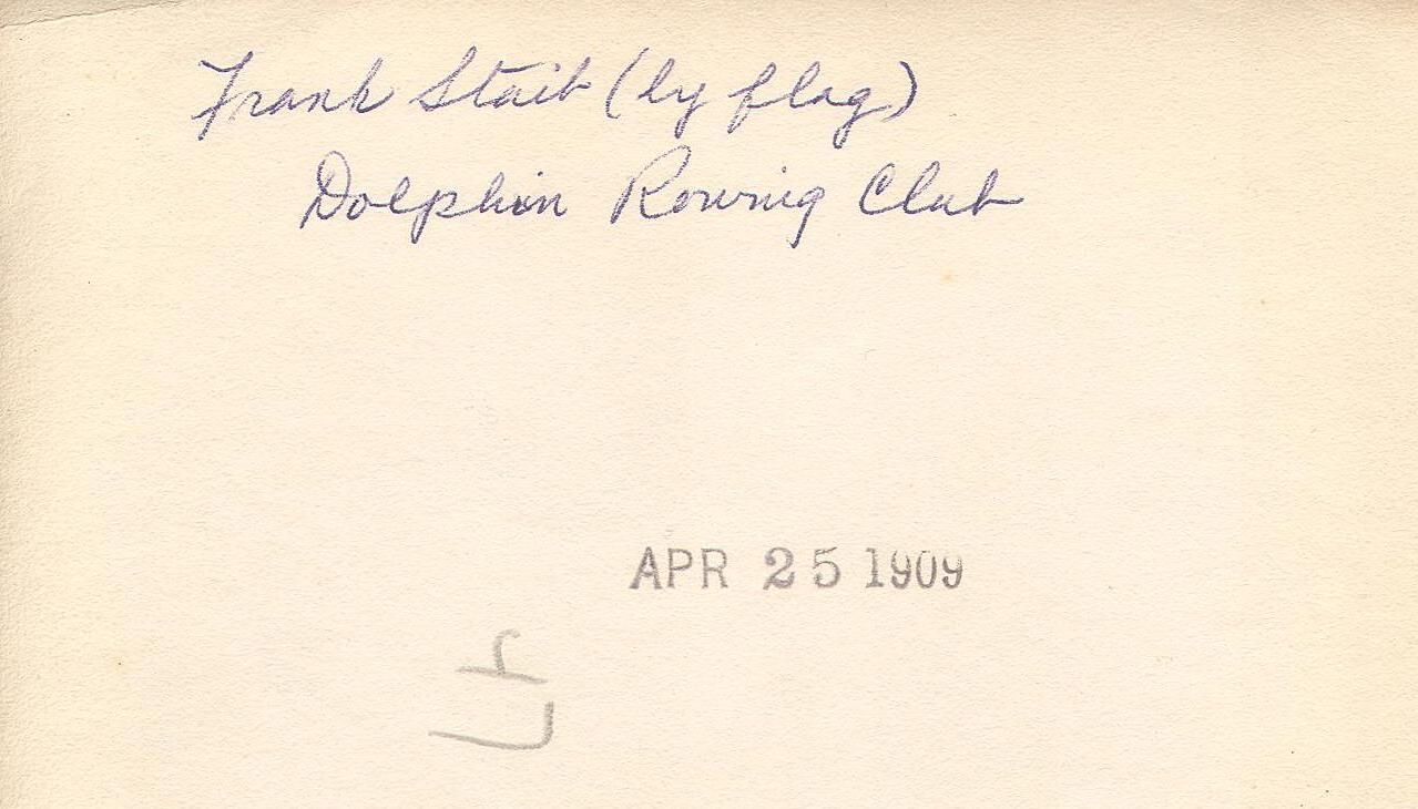 Donated by Dorothy Pendergast, niece of Frank Staib. July 21, 1987 after she spoke with Walt. He sent her a copy of an article he wrote on Frank Staib later published in Log Winter 1988 p.7, which included eulogy written by Lawton Hughes when Staib died in 1938.