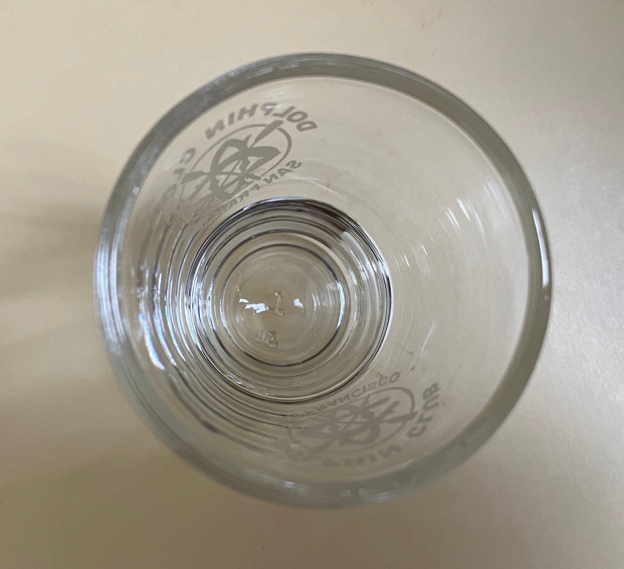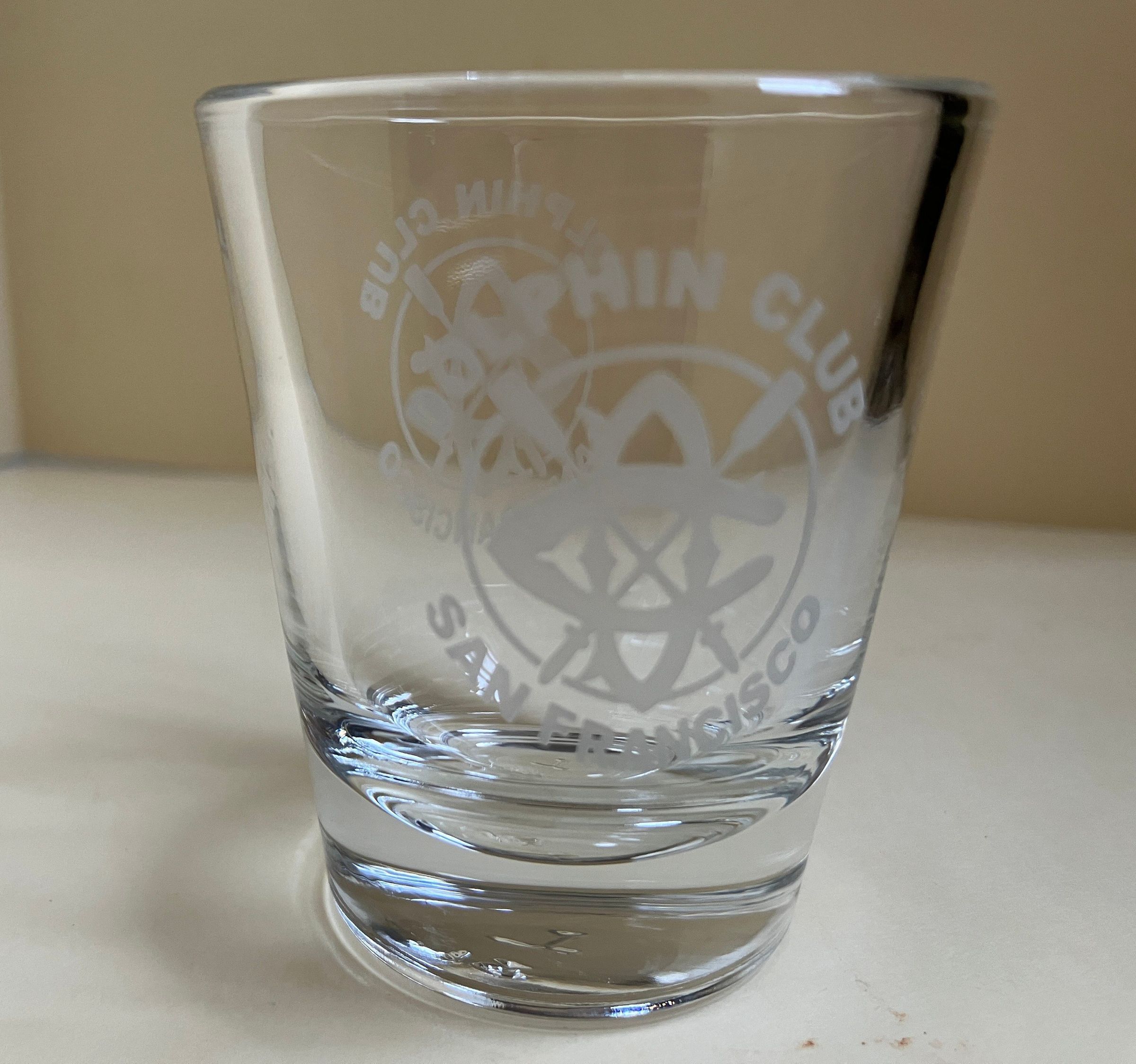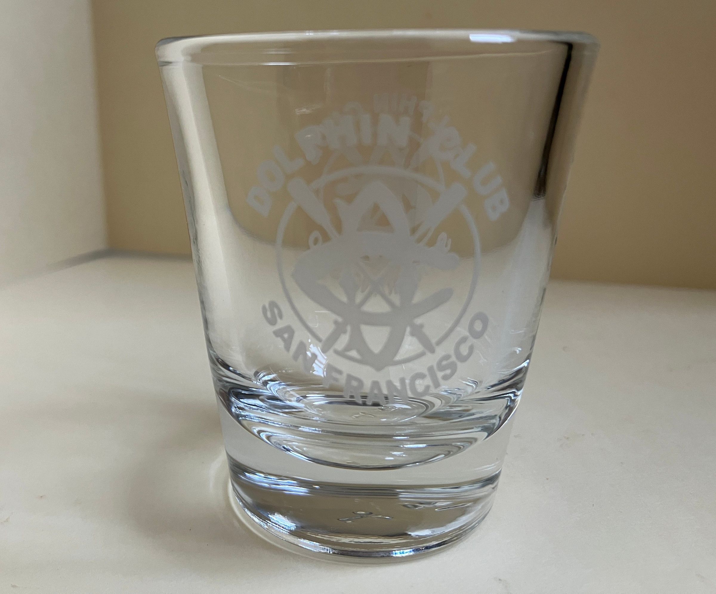 Shot glass Engraved on both sides: Dolphin Club - crossed oars logo in a circle - San Francisco Not known if this glass was associated with an event.