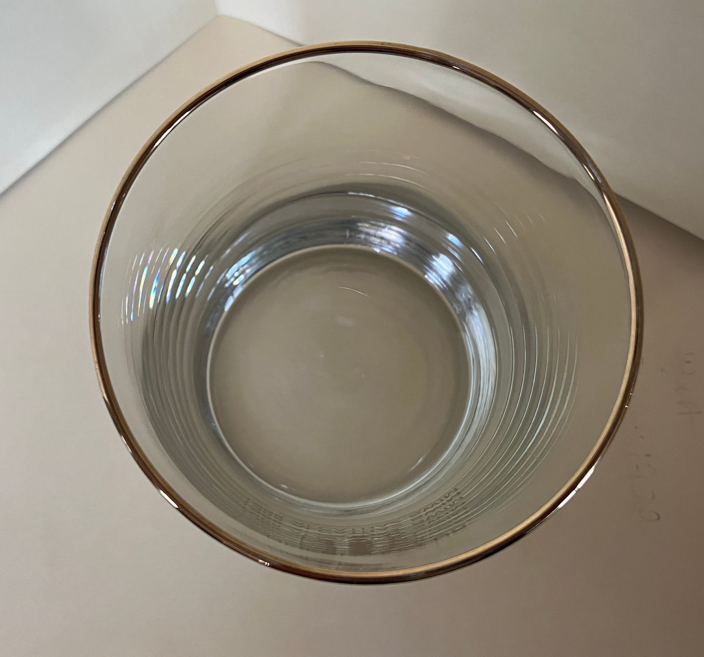 Cocktail tumbler glass/Old Fashioned/Lo Ball style. Gold around the rim.