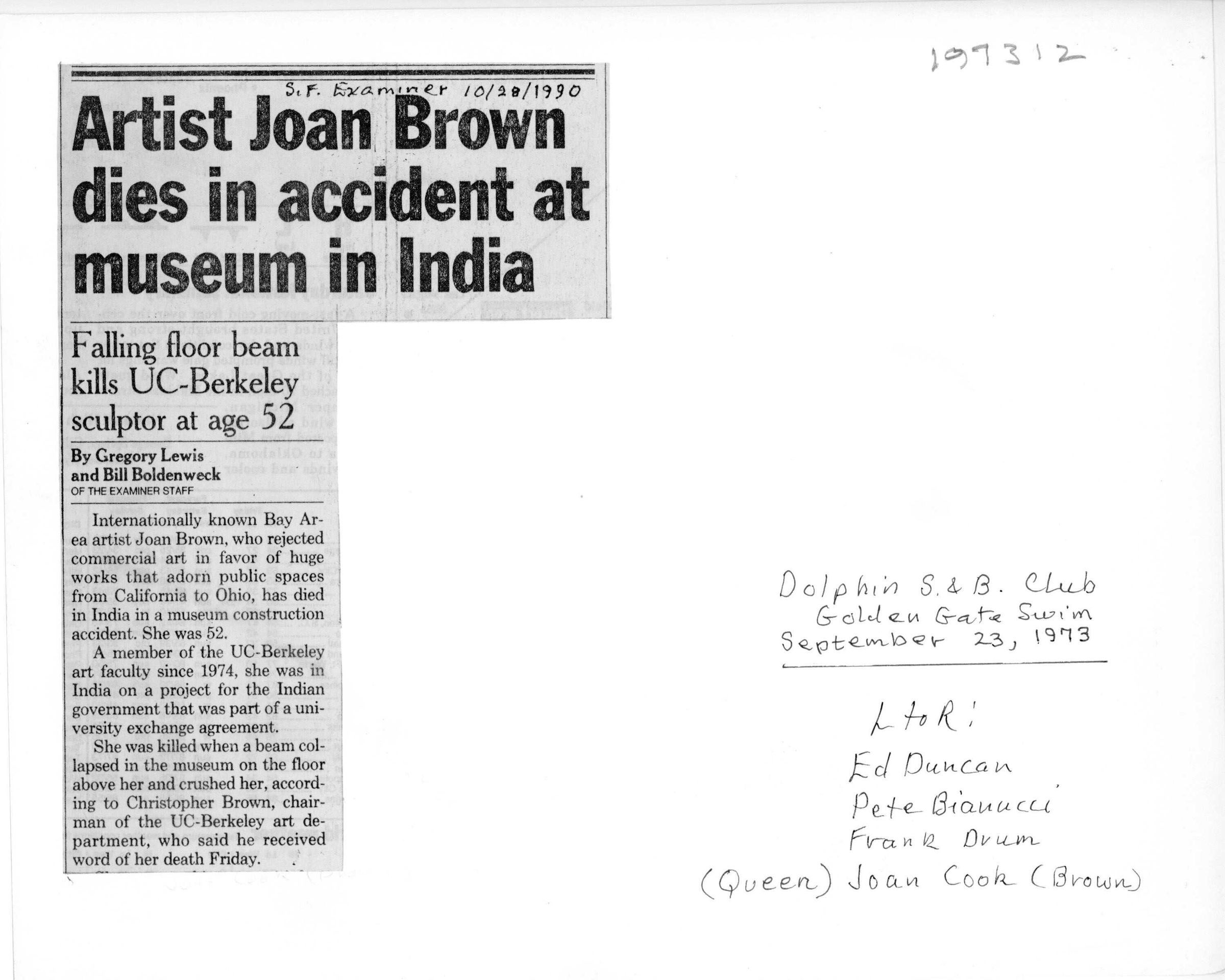 Awards being presented by Swim Queen Joan Cook (artist Joan Brown) 1973Subject Person or Organization