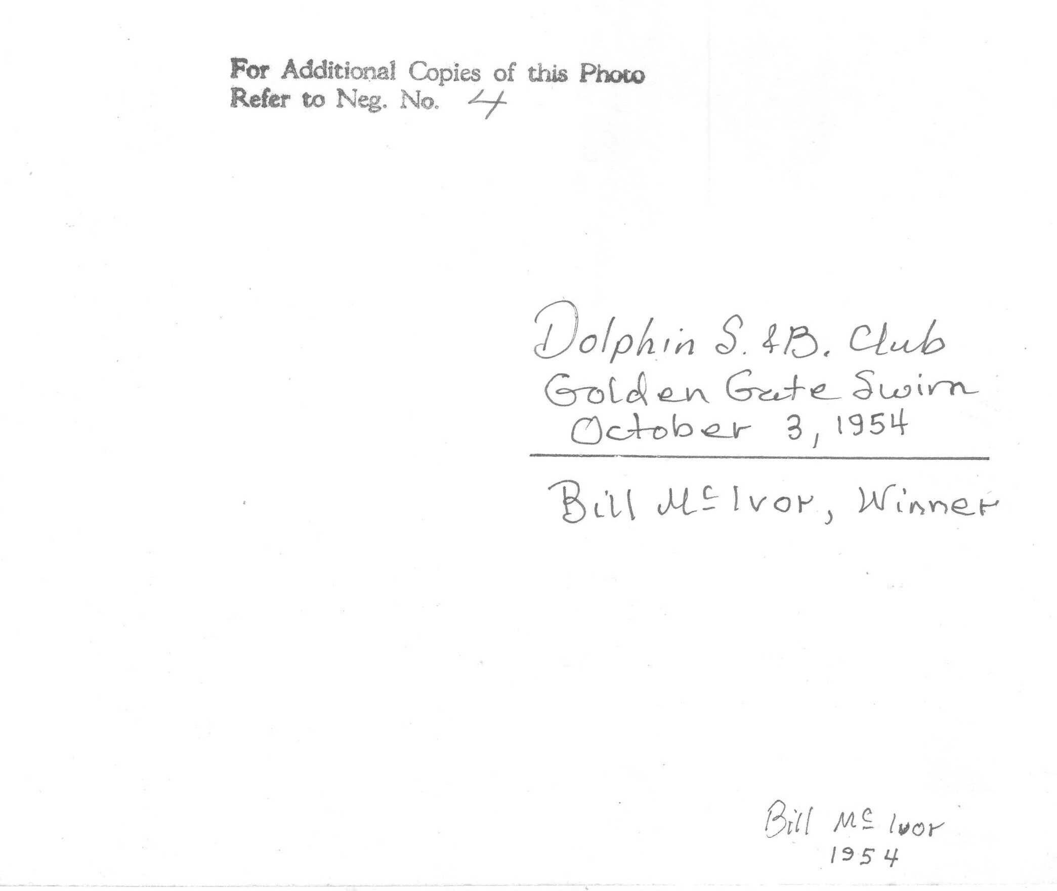 Bill McIvor, Four-time winner of the Golden Gate SwimSubject Person or Organization