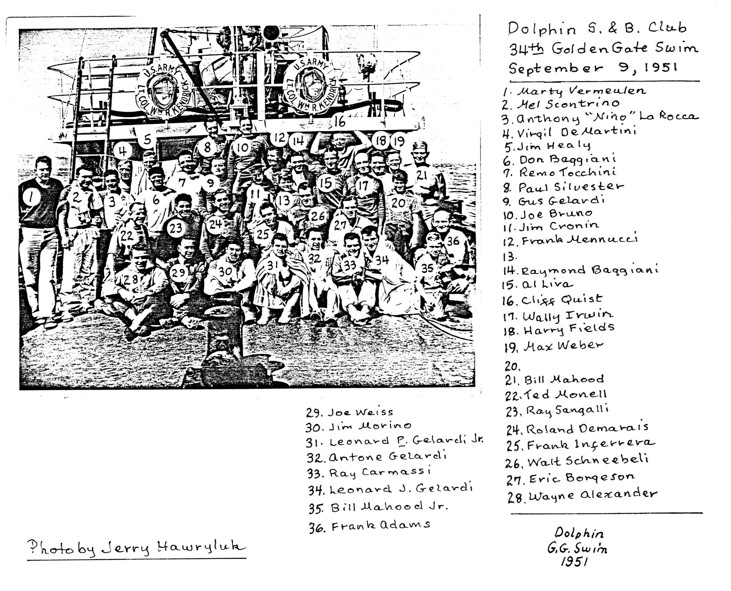 Swimmers posing before the 1951 Gate swimSubject Person or Organization