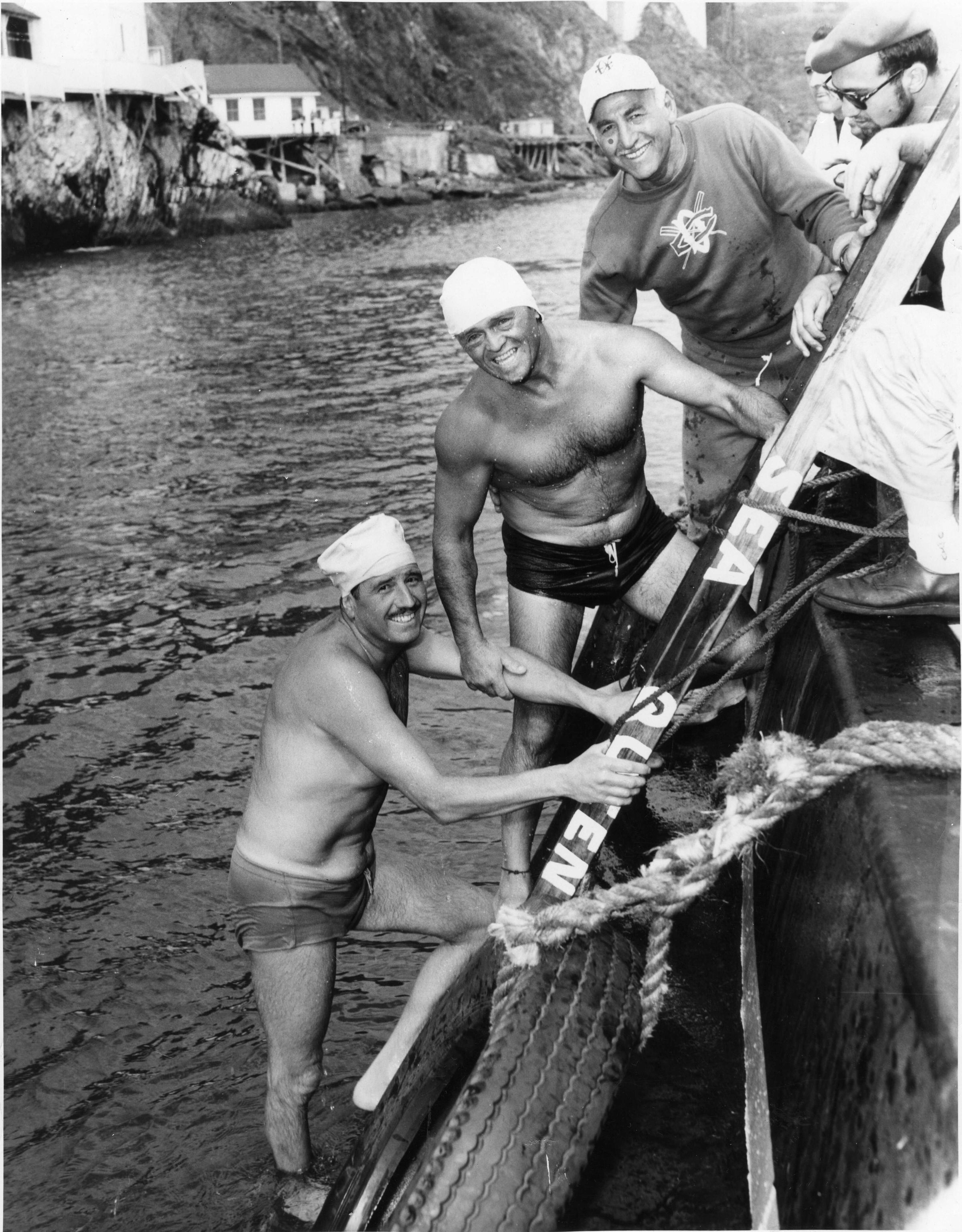 Cecco completing the Golden Gate Swim 1957