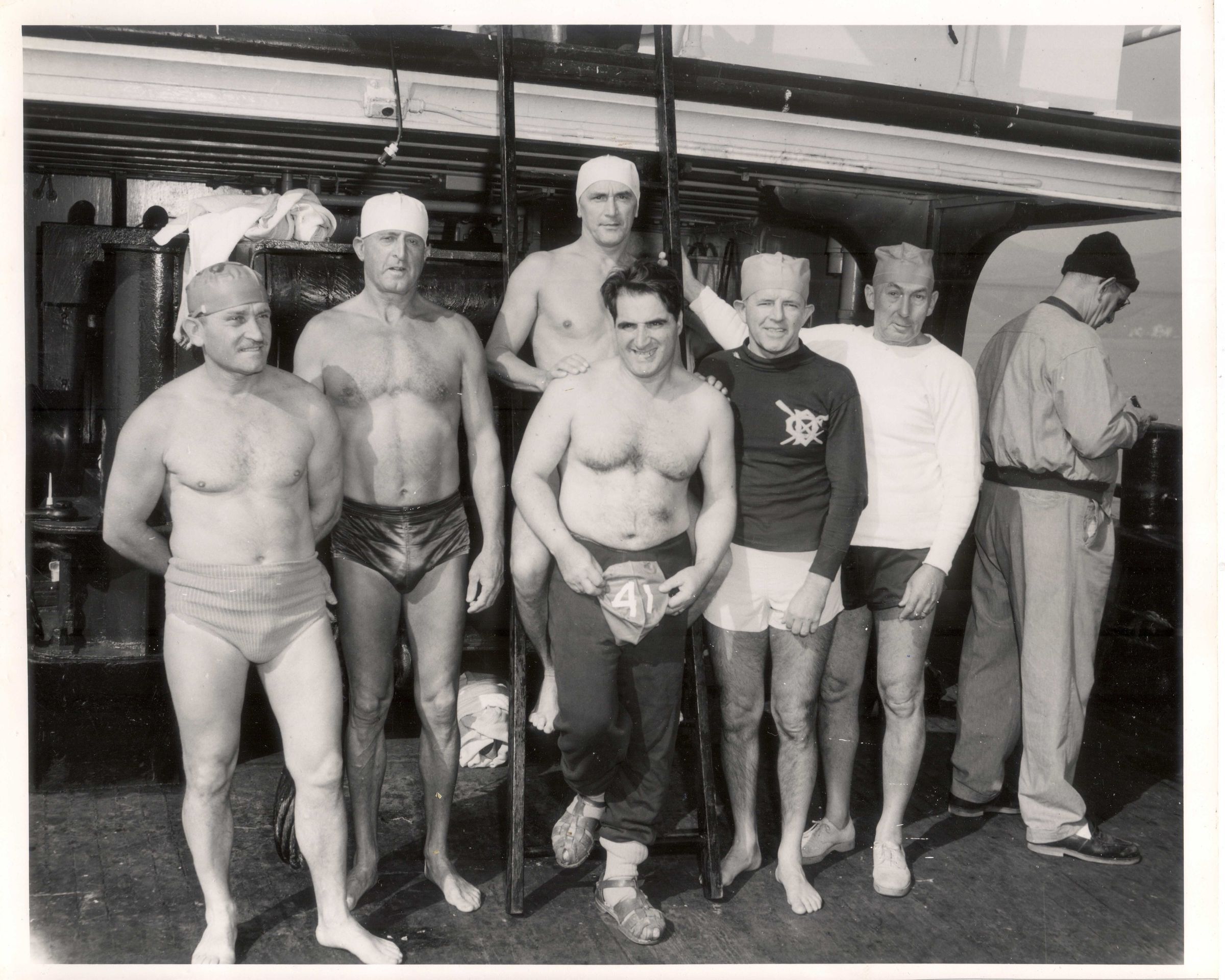 Swimmers on the boat going to the Golden Gate