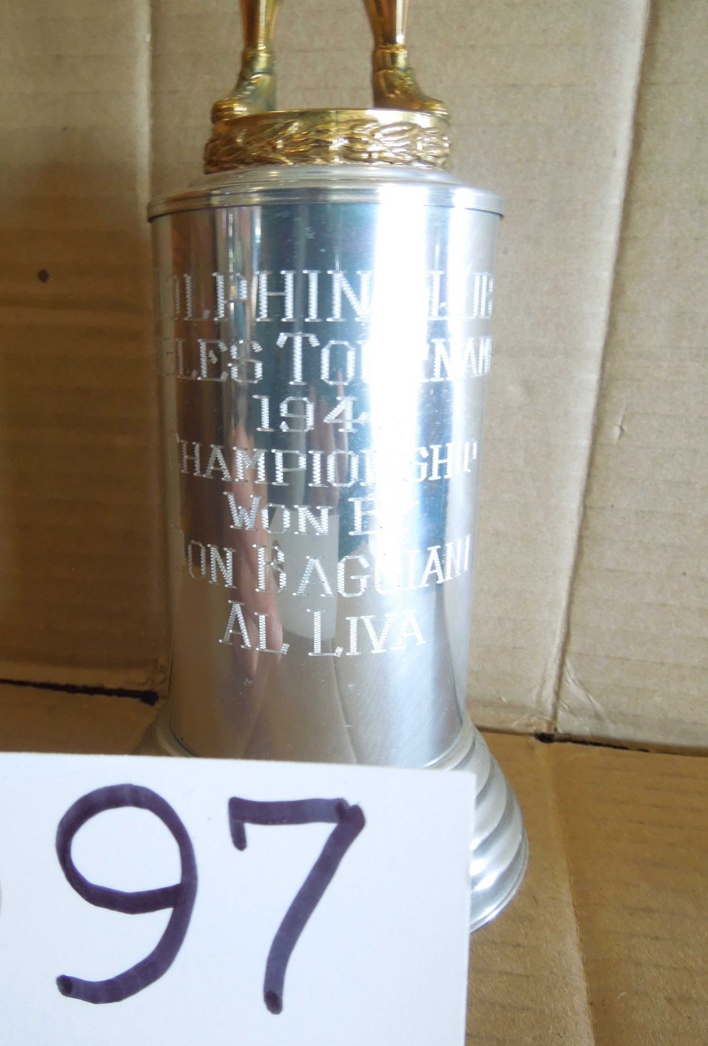 Engraving on front: "Dolphin Club - Doubles Tournament - 1946 -Championship - Won by - Don Baggiani - Al Liva"Made/Created