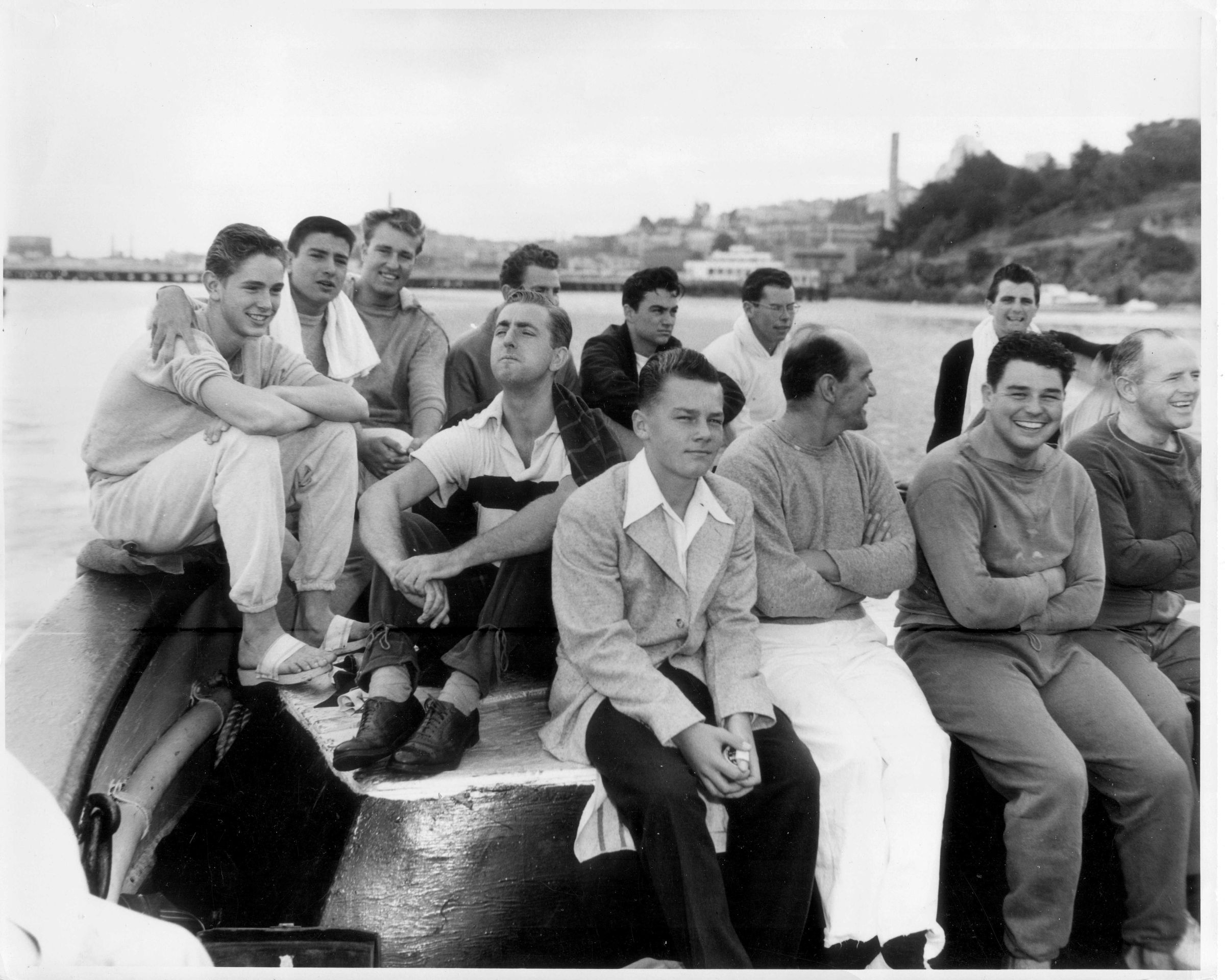 Swimmers on the boat going to the Golden Gate