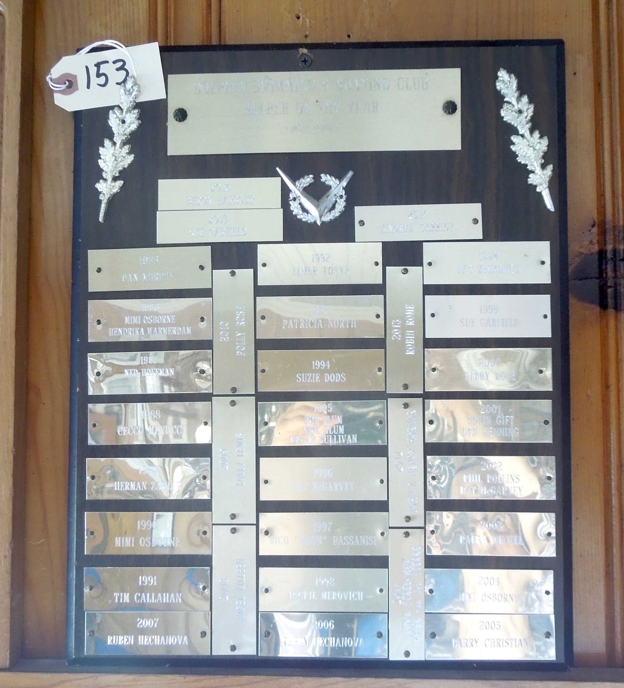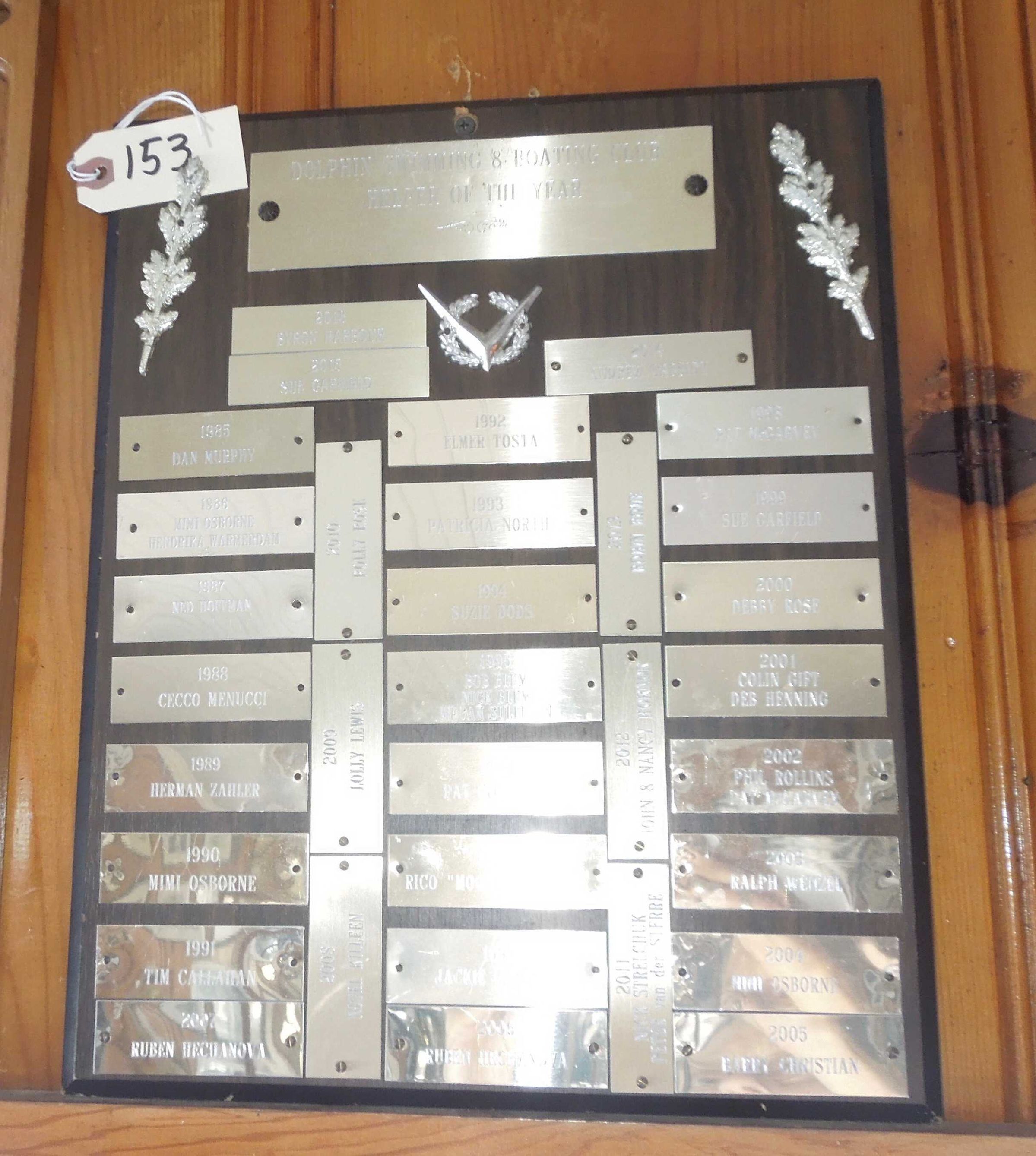 Text on header plate: Dolphin Swimming and Boating Club Helper of the Year from 1985 to 2016.Use