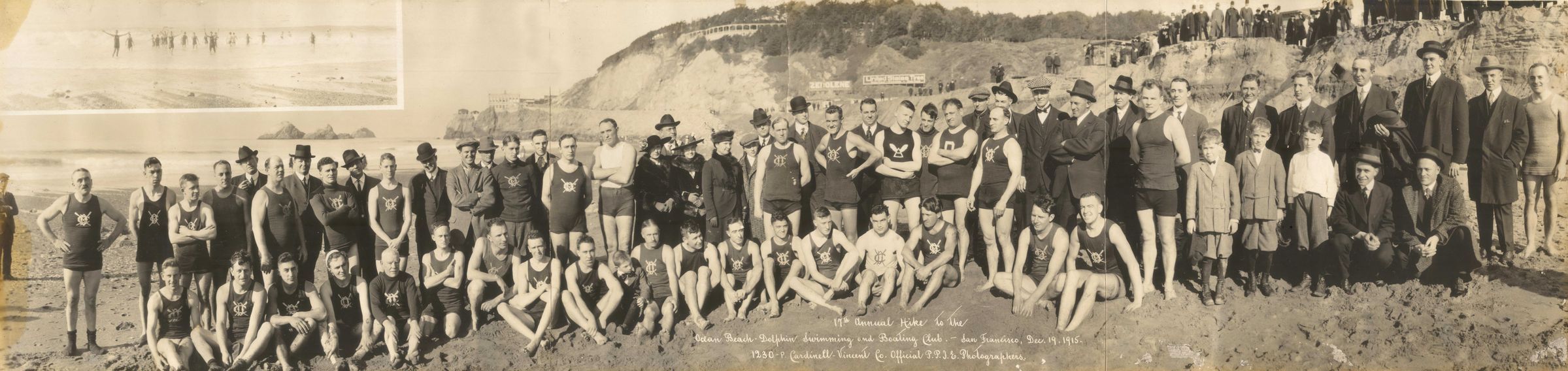 Annual Hike & Dip group picture with Cliff House in background