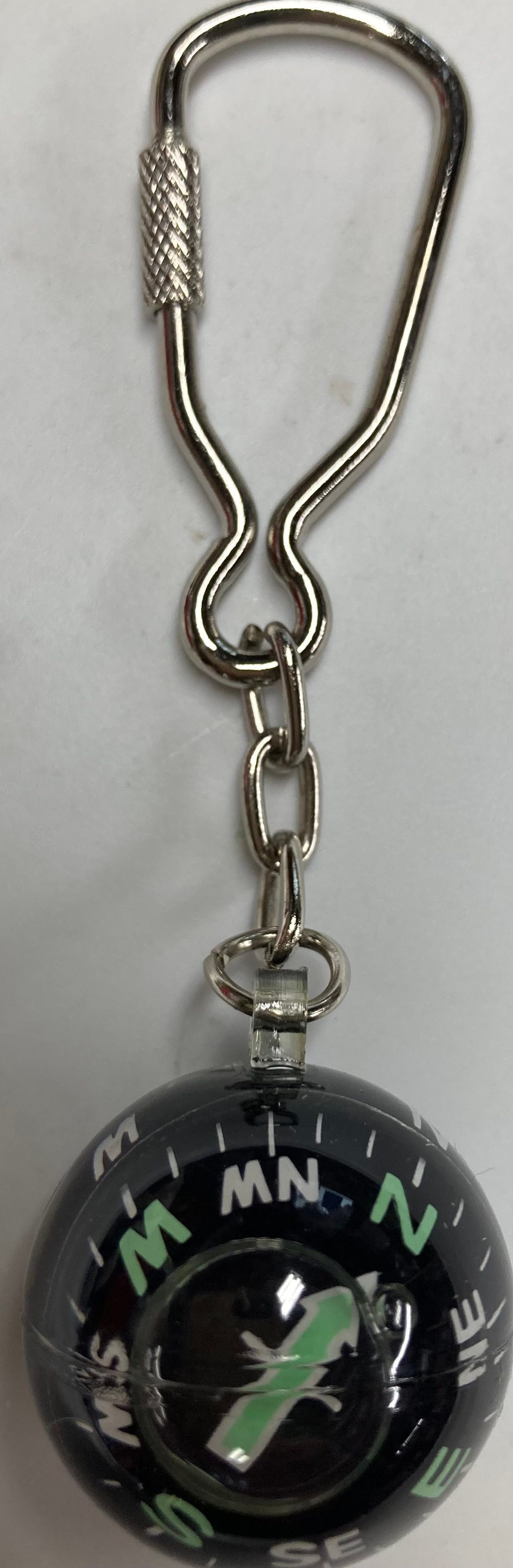 Silver key chain with screw clasp and ball compass at one end.