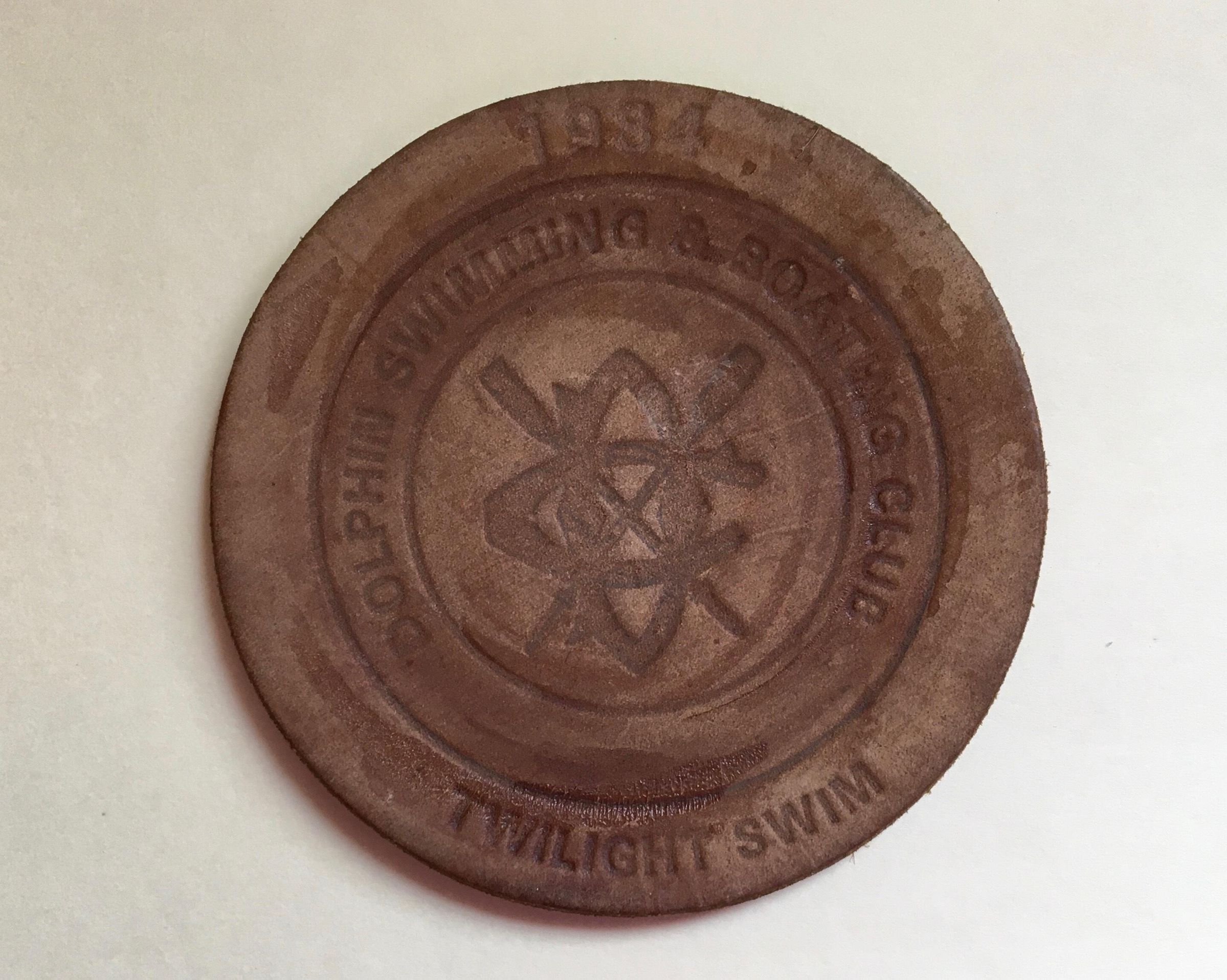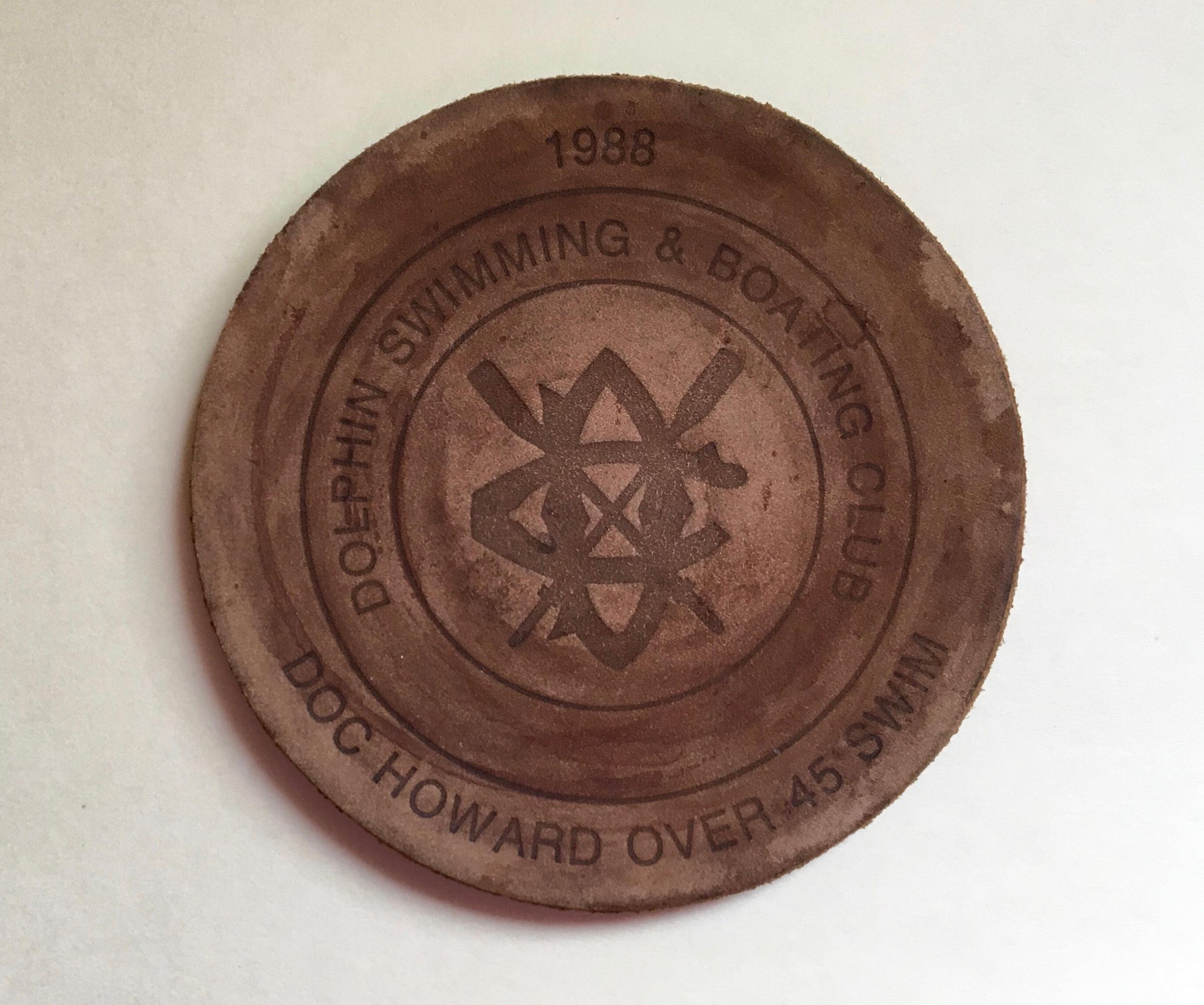 Leather coasters were given at many swims and one regatta over the years.