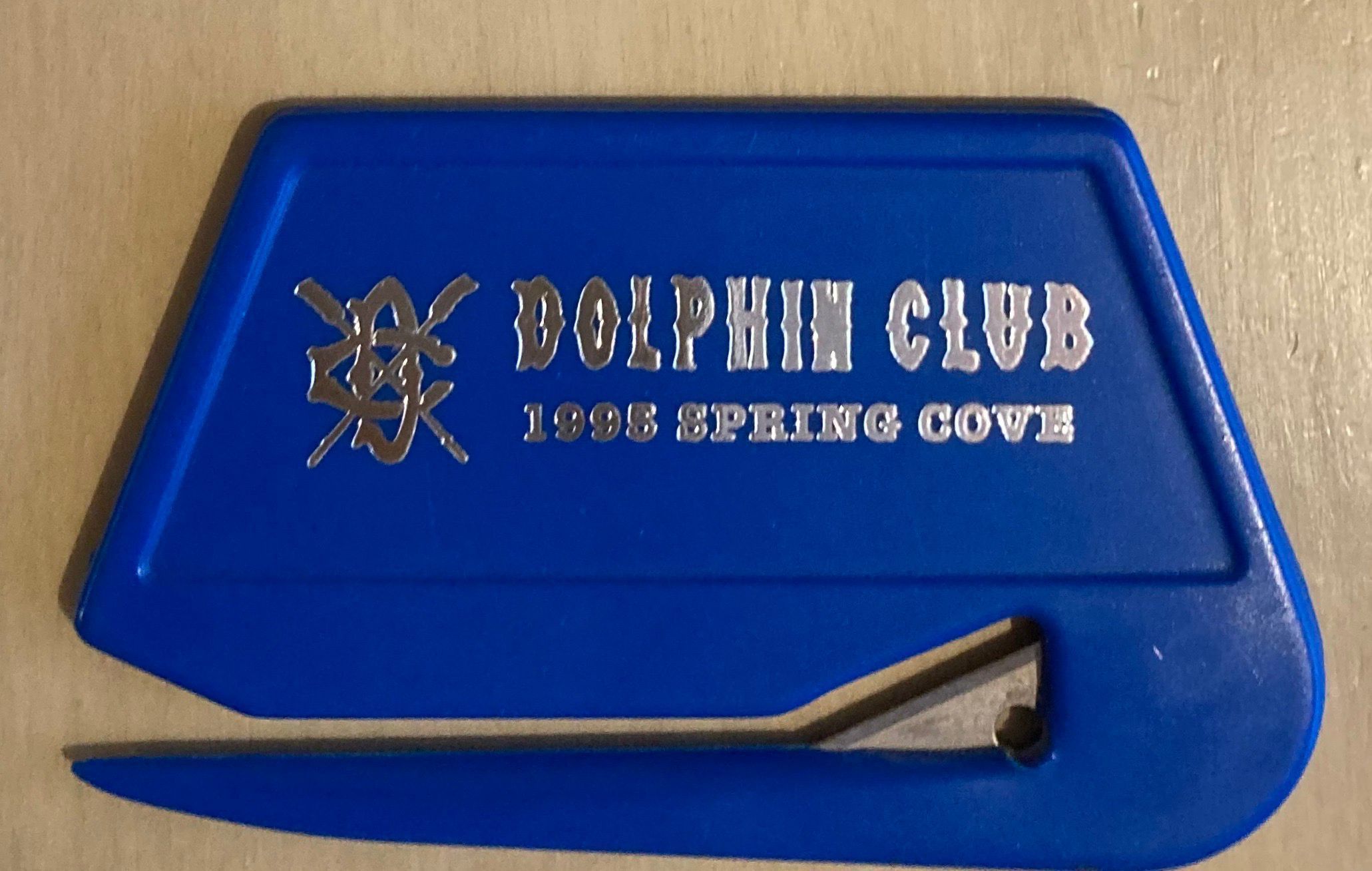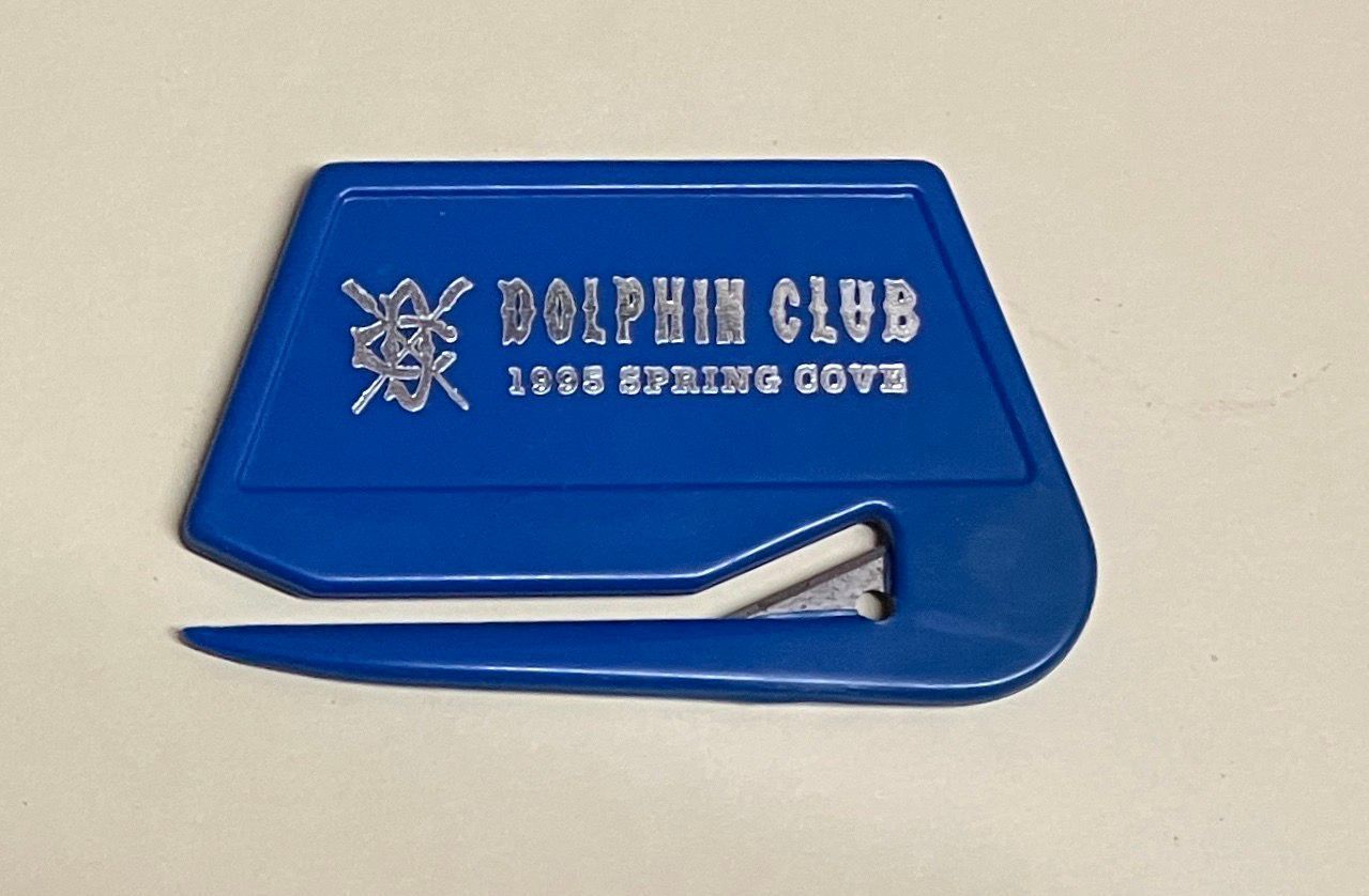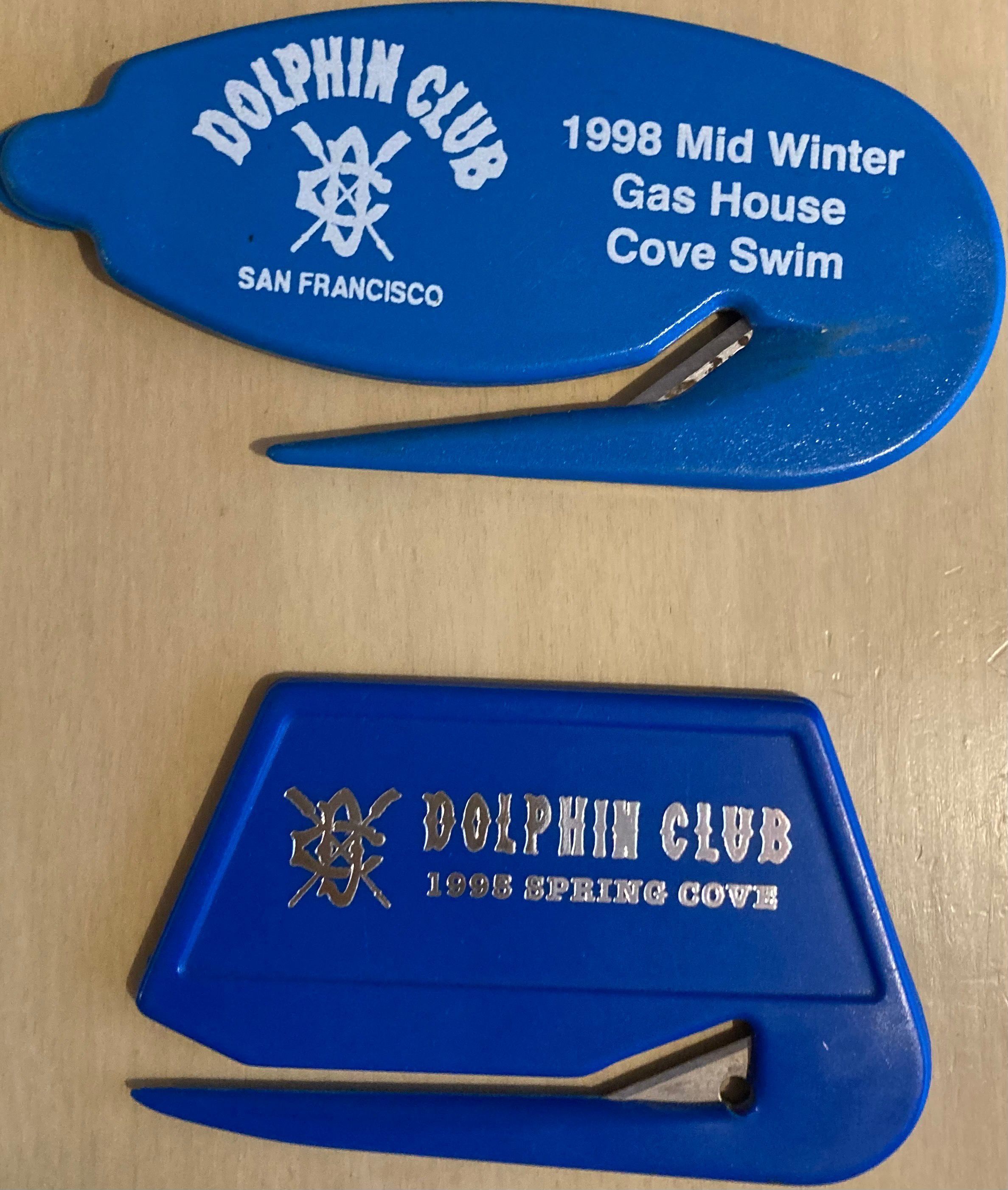 Text: "Crossed oars logo - Dolphin Club - 1995 Spring Cove."Use