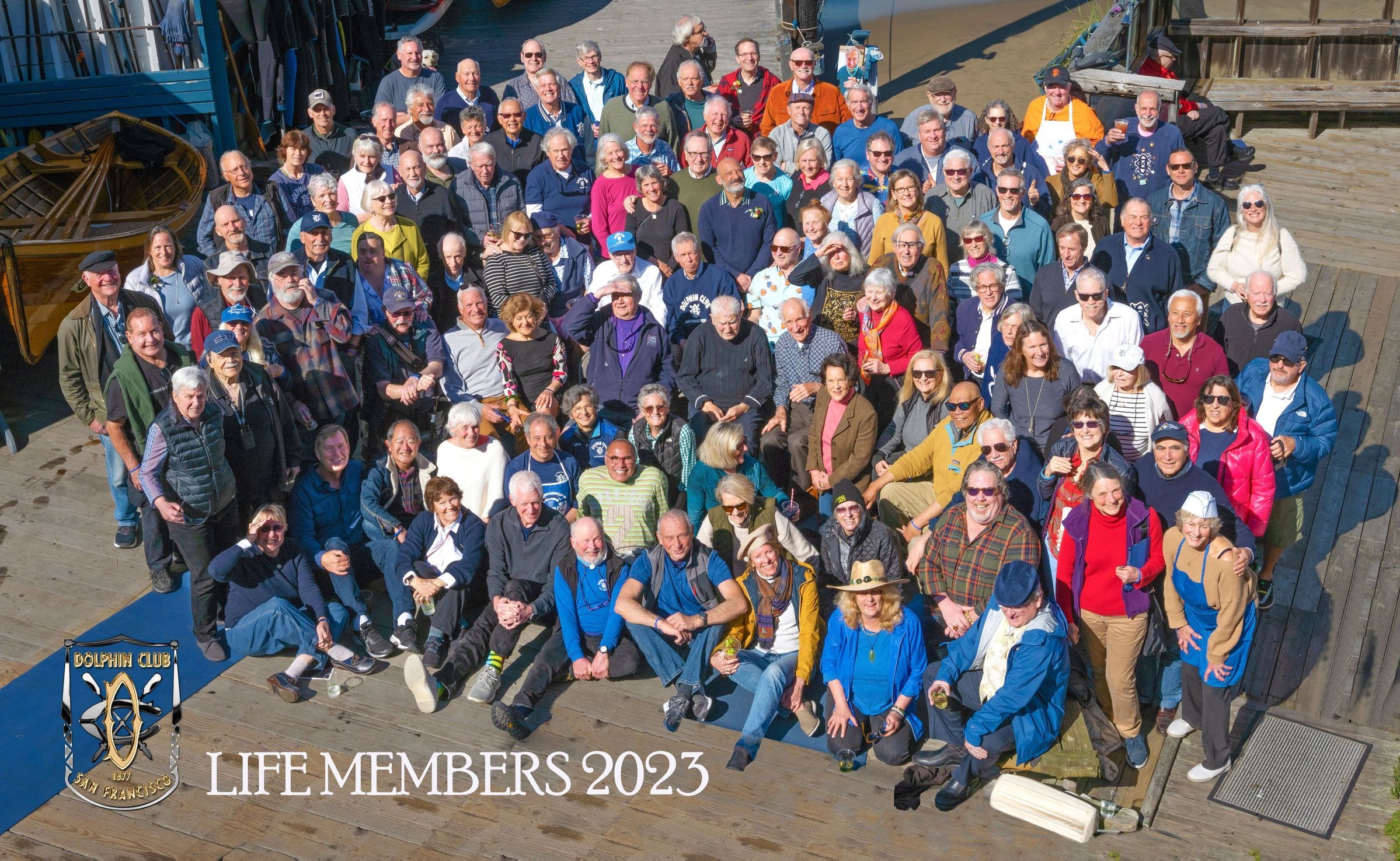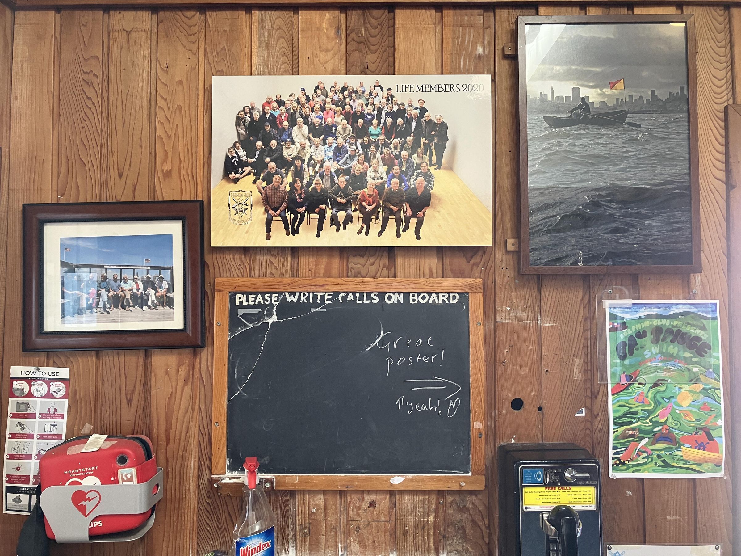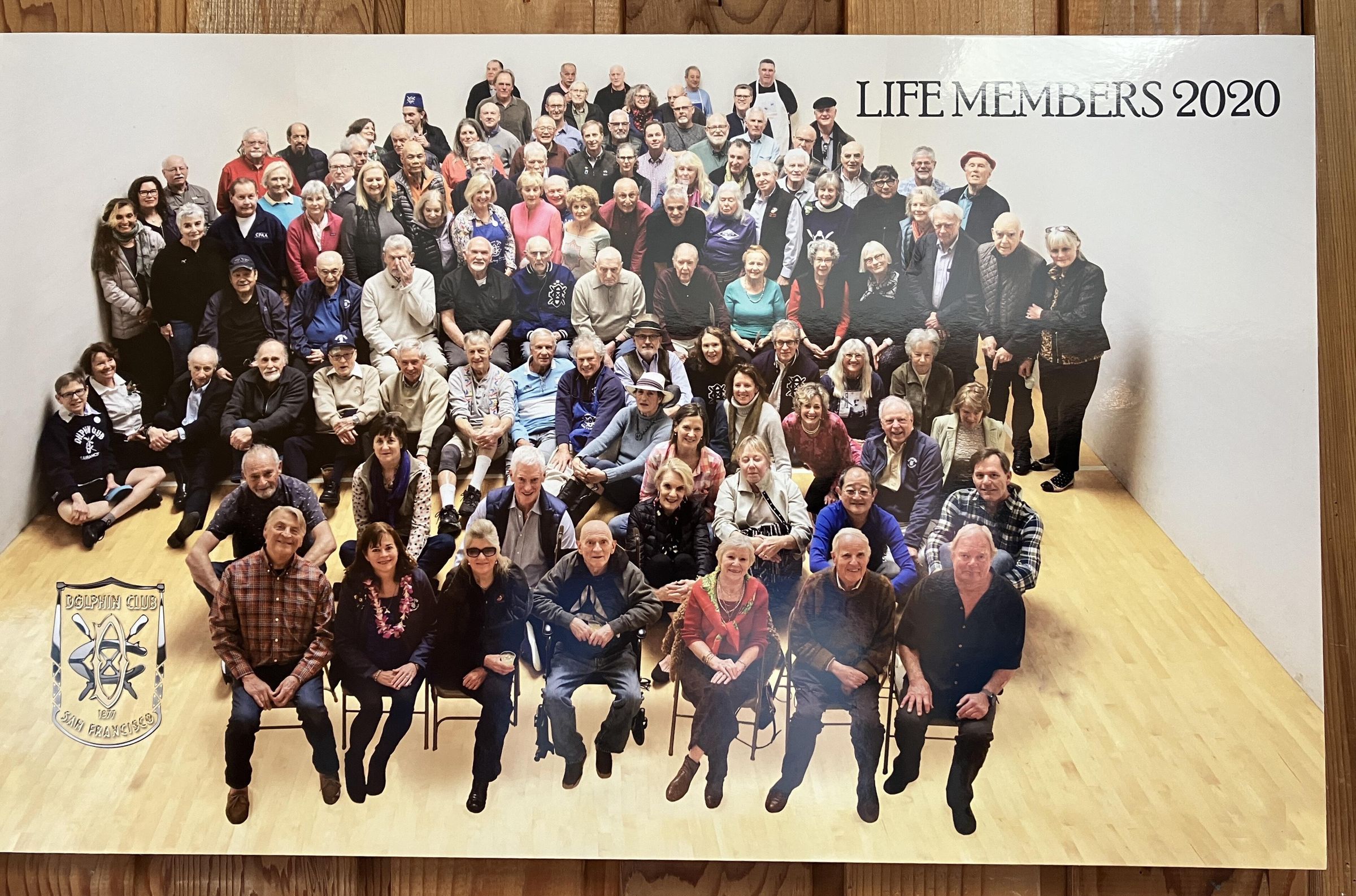 The latest life member group photo is displayed on the north wall of the upstairs landing, above the black board and pay phone.