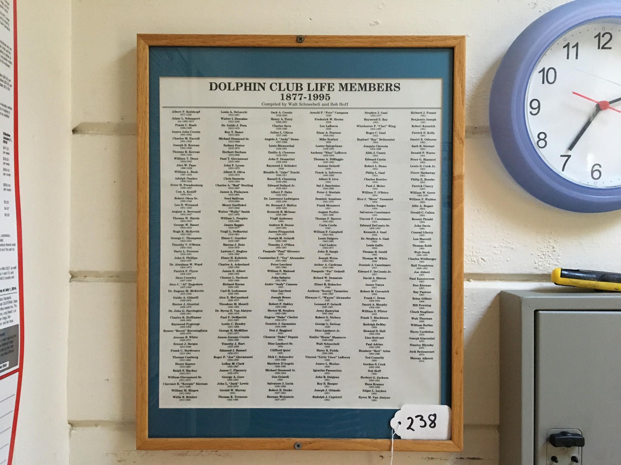 Framed matted printed list of Dolphin Club Life Members 1877-1995