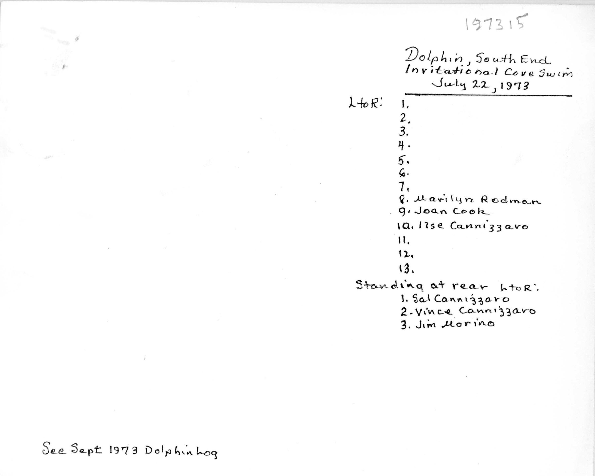 L to R if known: 8. Marilyn Rodman, 9. Joan Brown, 10. Lise CannizzaroPhotograph Details
