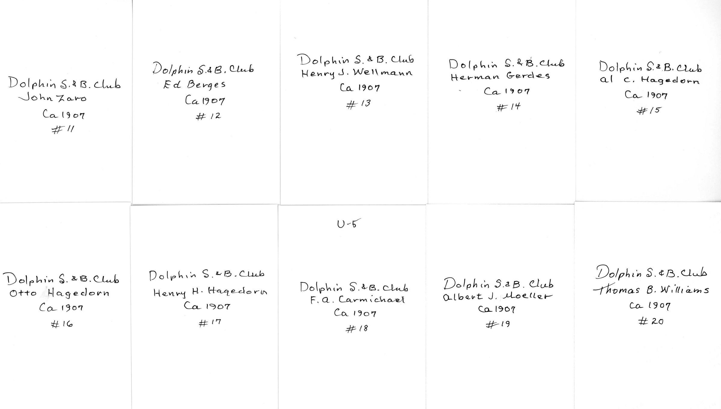 Portraits of Dolphin Club members circa 1907.