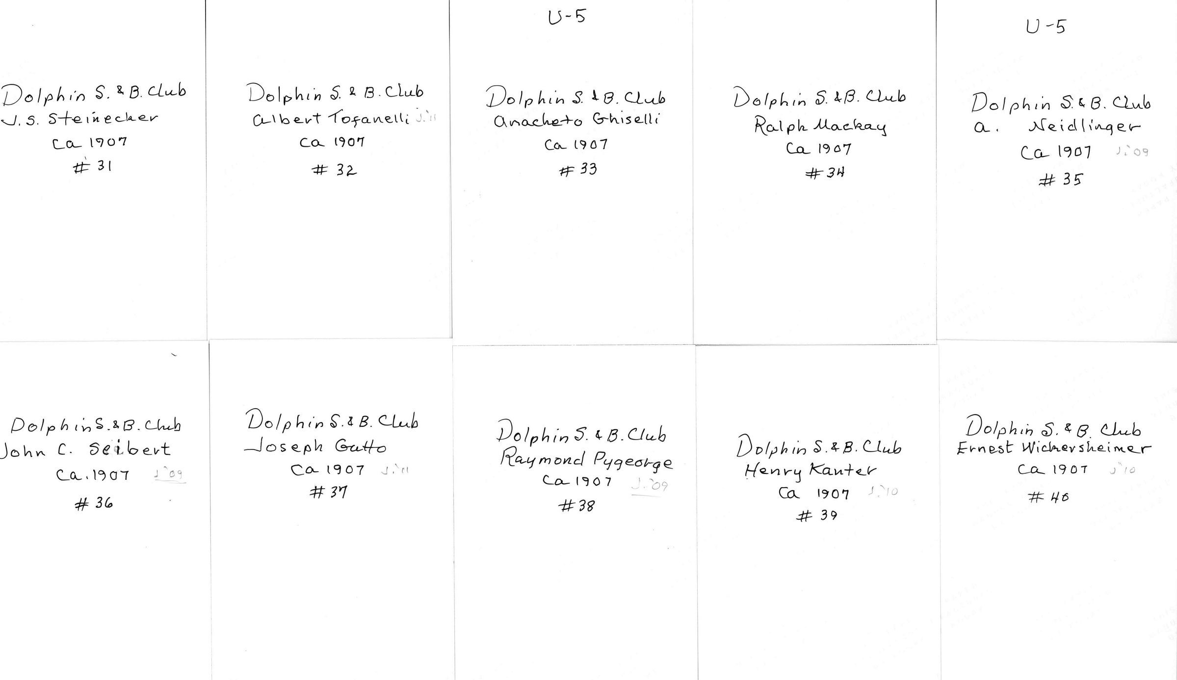 Portraits of Dolphin Club members circa 1907.