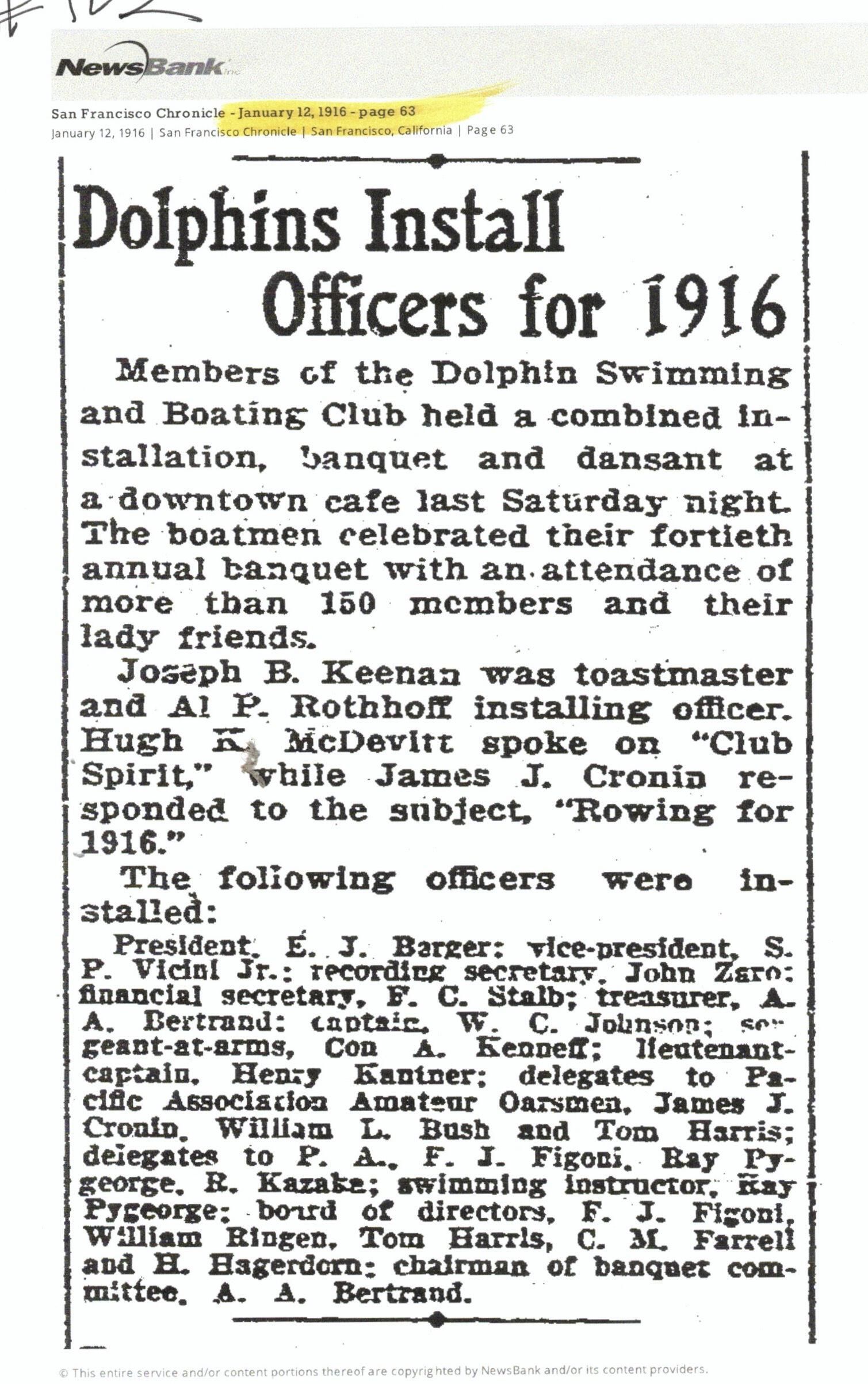 The address of the tavern at the time of the 1916 Dolphin banquet may be 333 Geary. See Fig 8, p. 8 of above 2012 document.