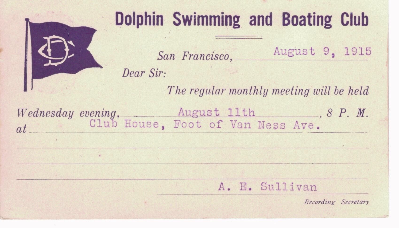 From A.E. Sullivan, Recording SecretaryArchive Details