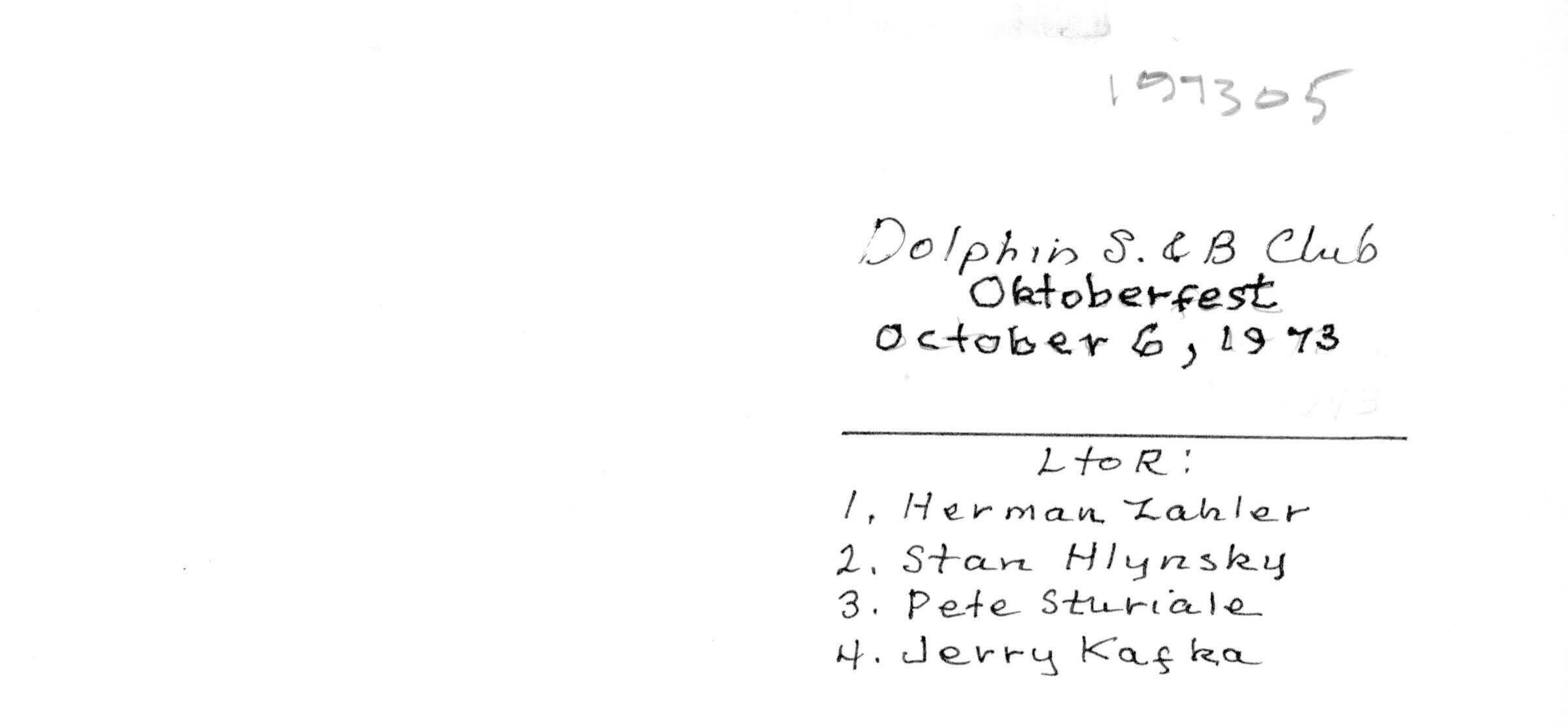 Octoberfest Party 1973: Zahler, Hlynsky, Sturiale, and Jerry KafkaSubject Person or Organization