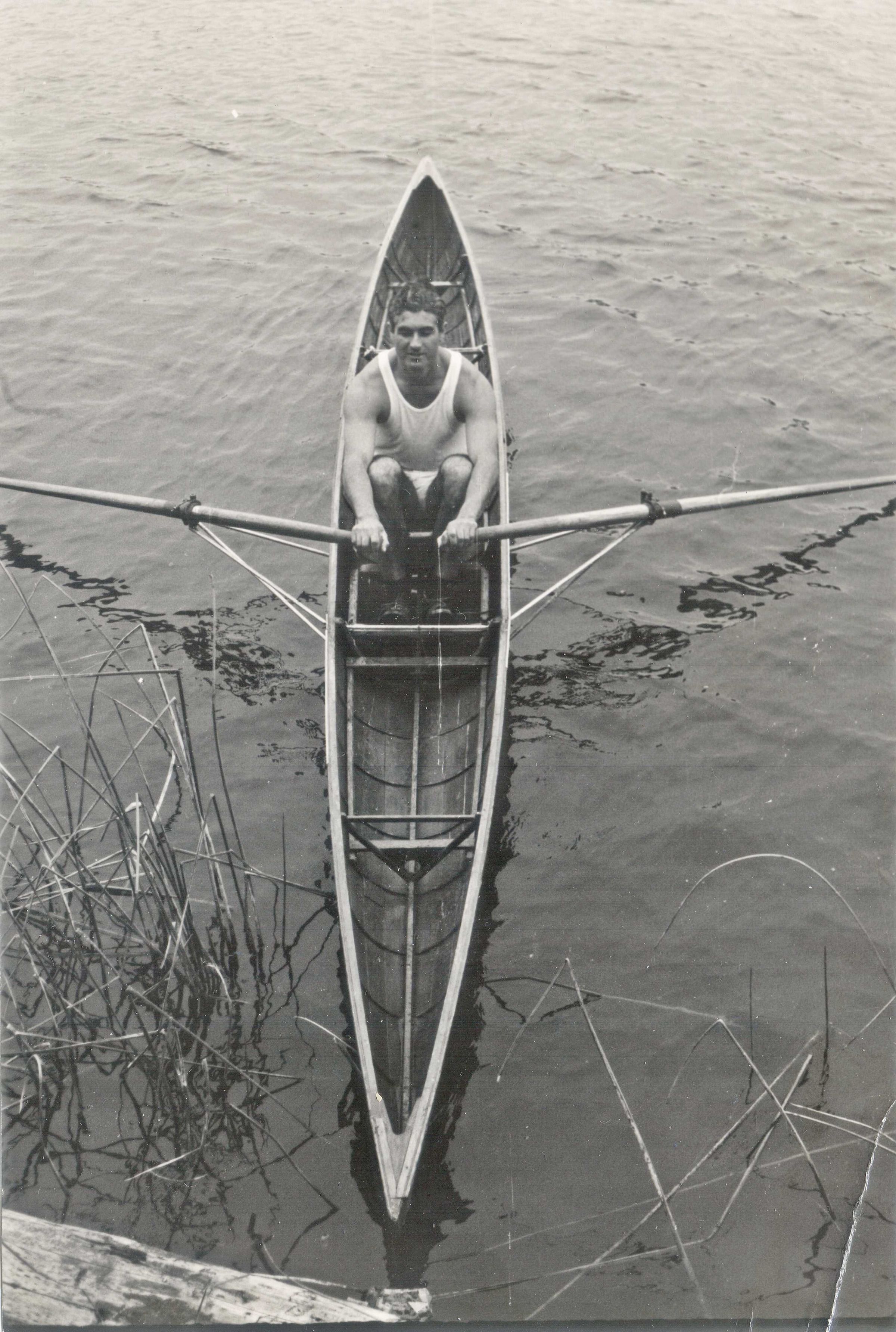 Club member rowing an outrigged skiff